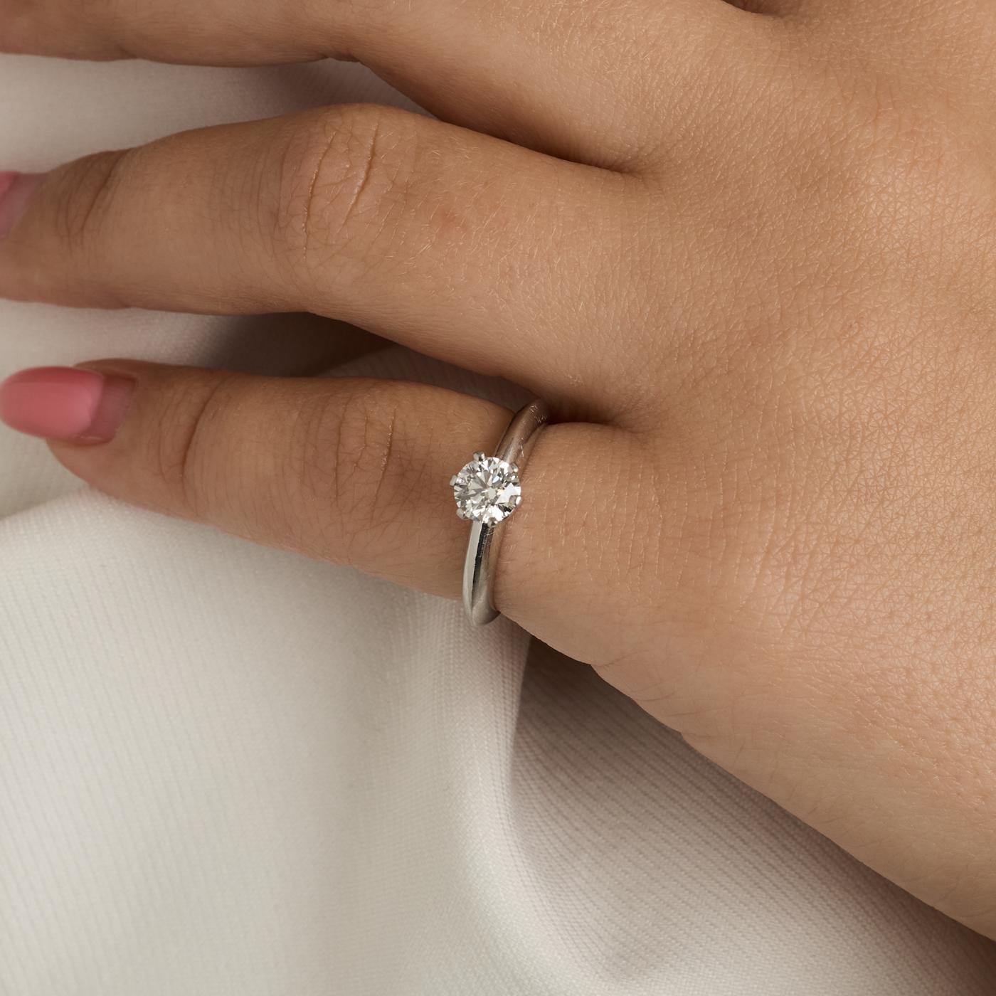 Modell: Tiffany & Co Solitairring med diamant (0.61 ct) i 8 karat str. 49