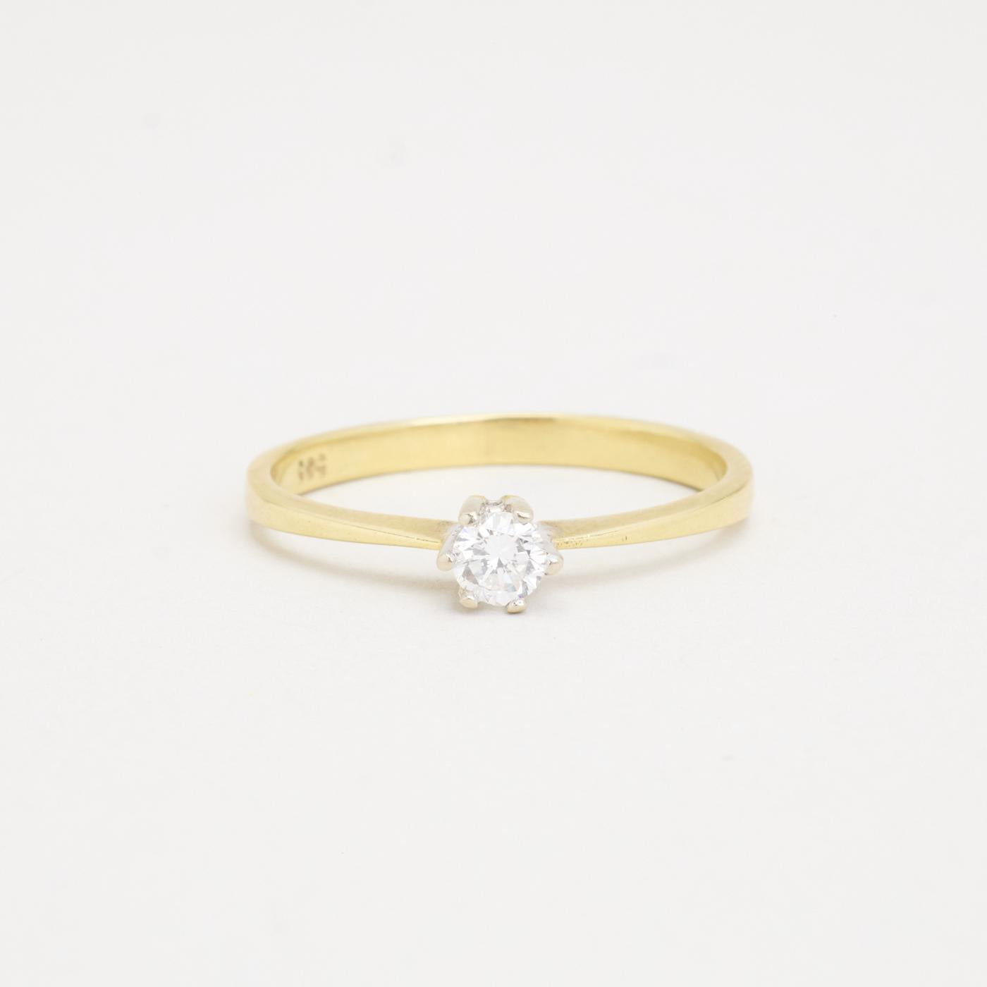 Modell: Solitairring med diamant (0.19 ct) i 14 karat str. 58