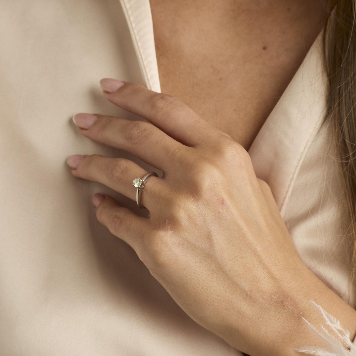 Modell: Solitairring med diamant (0.32 ct) i 14 karat str. 49