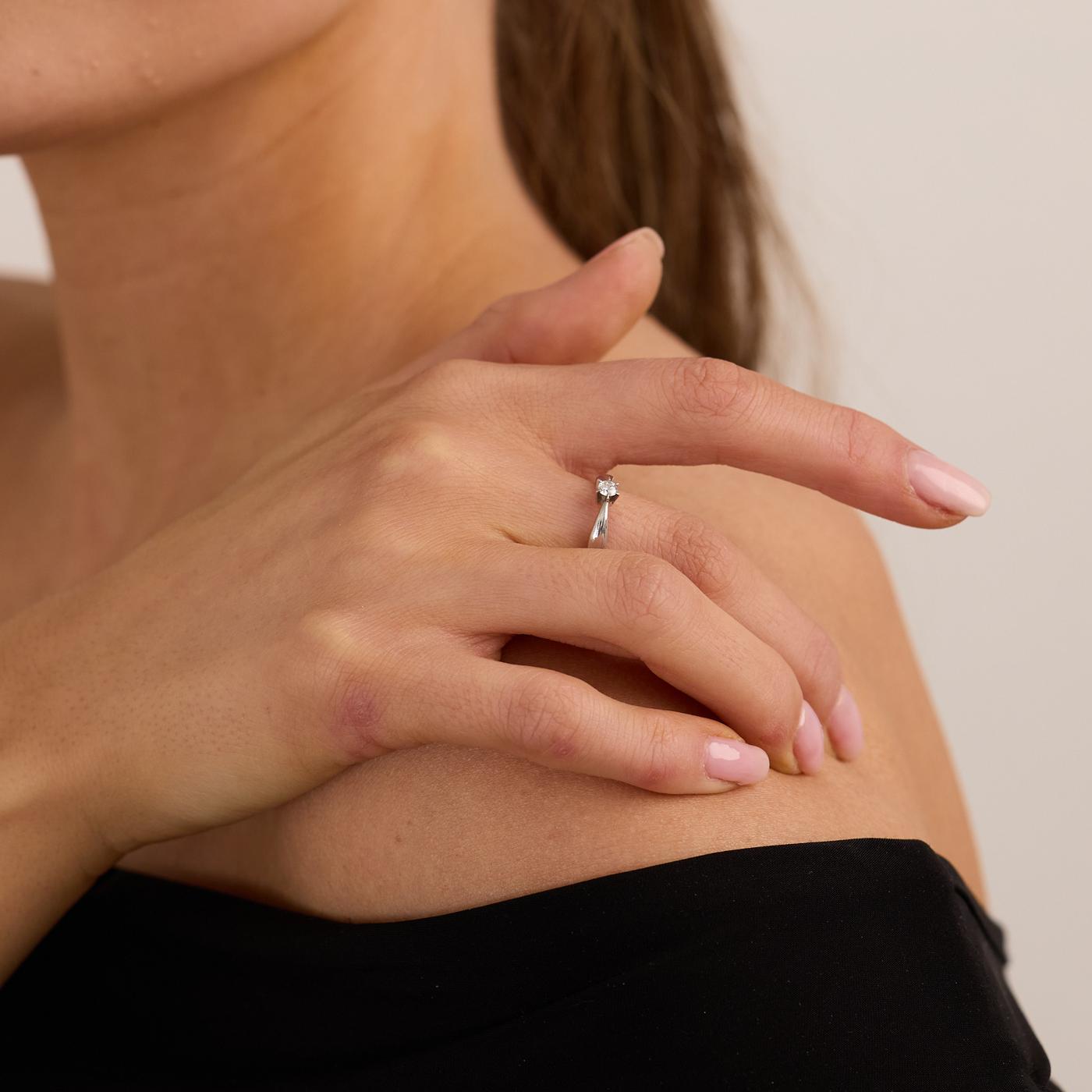 Modell: Solitairring med diamant (0.1 ct) i 18 karat str. 51