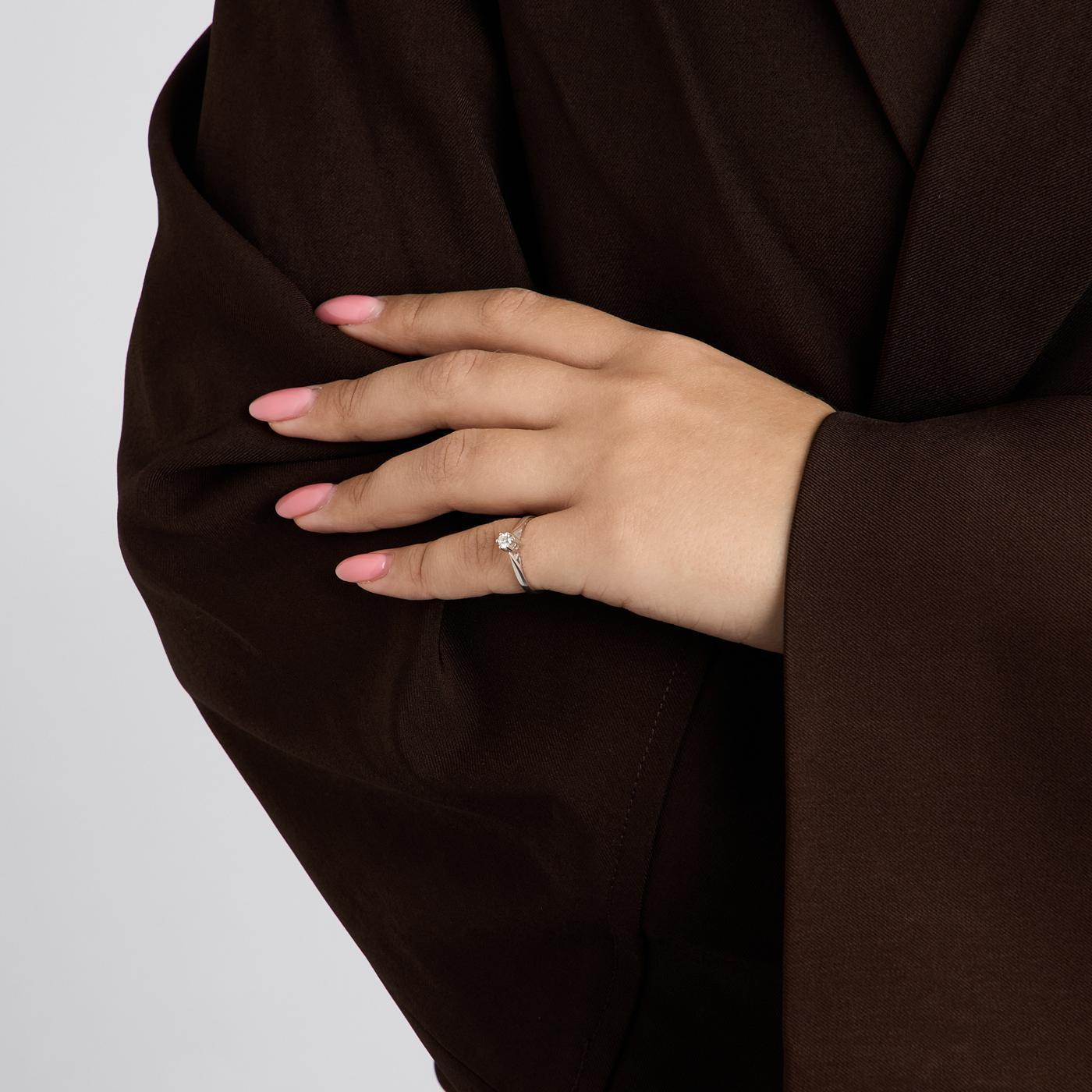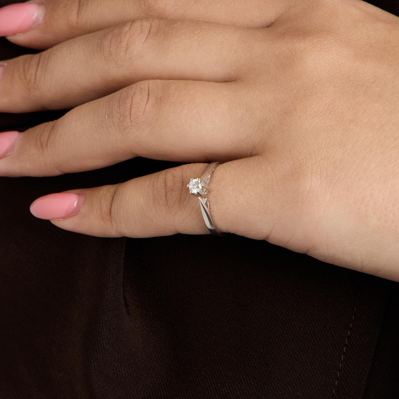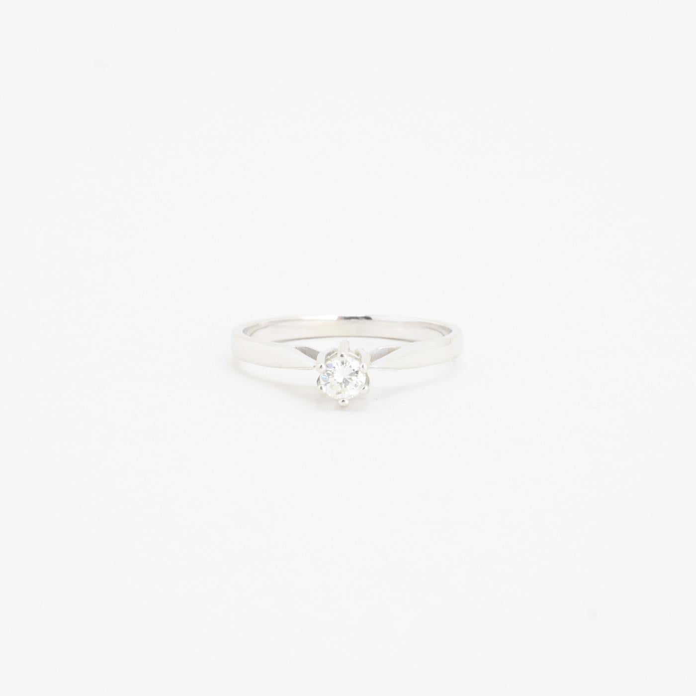 Modell: Solitairring med diamant (0.13 ct) i 14 karat str. 50