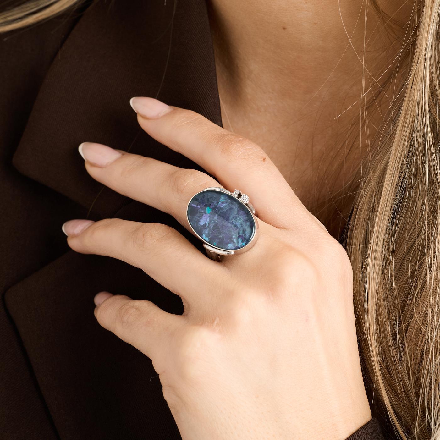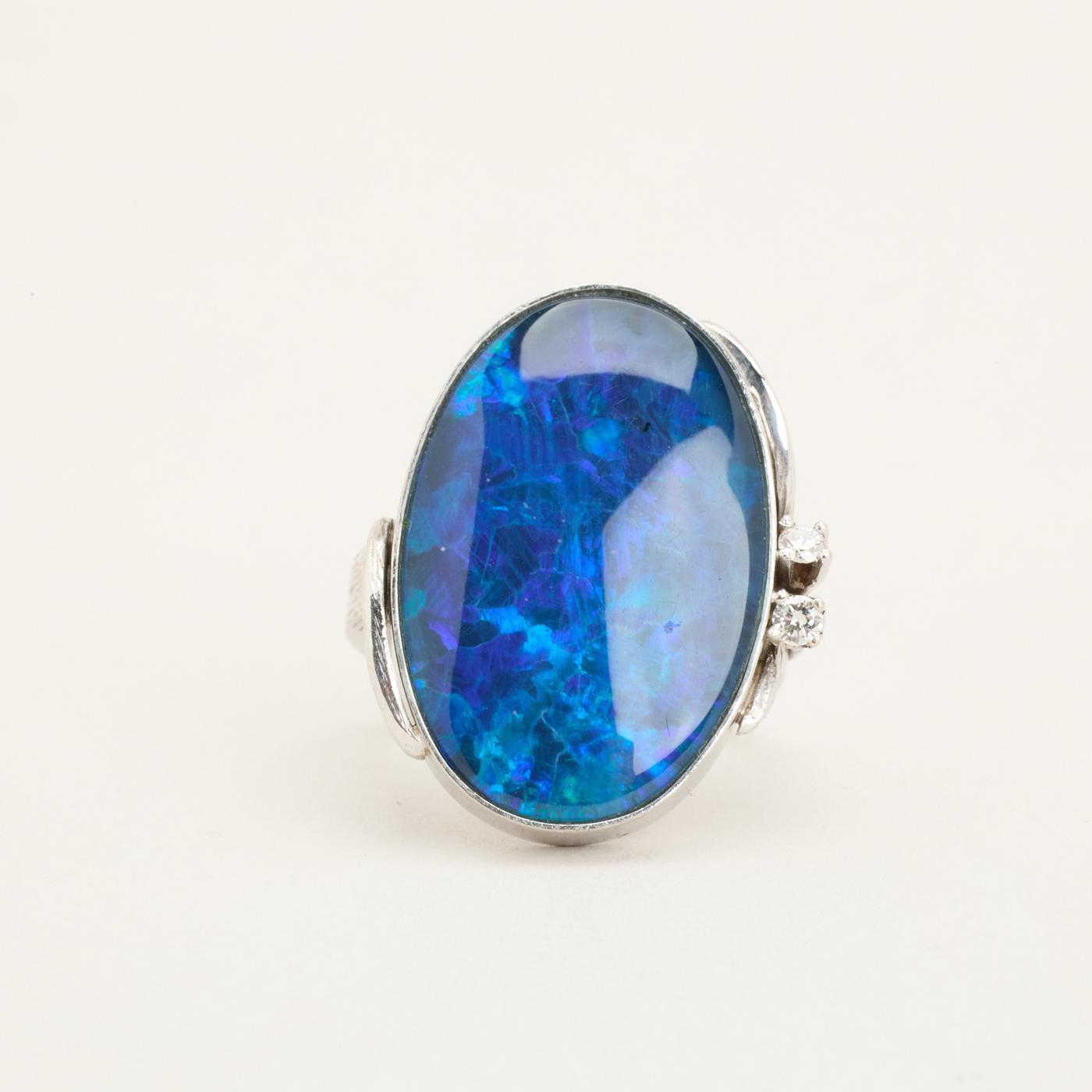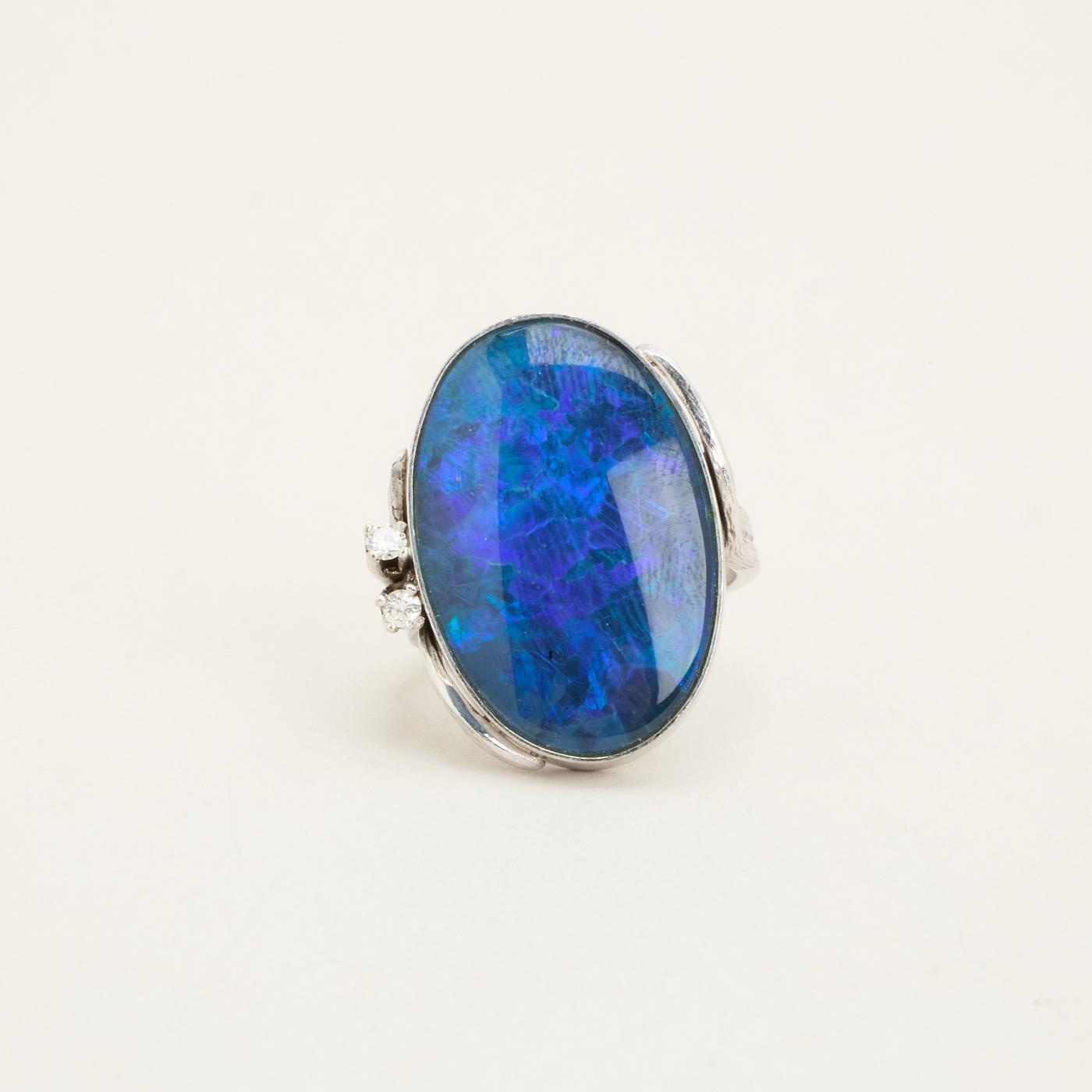 Modell: Cocktail ring med diamant (0.09 ct) i 18 karat med en opal trippel str. 54