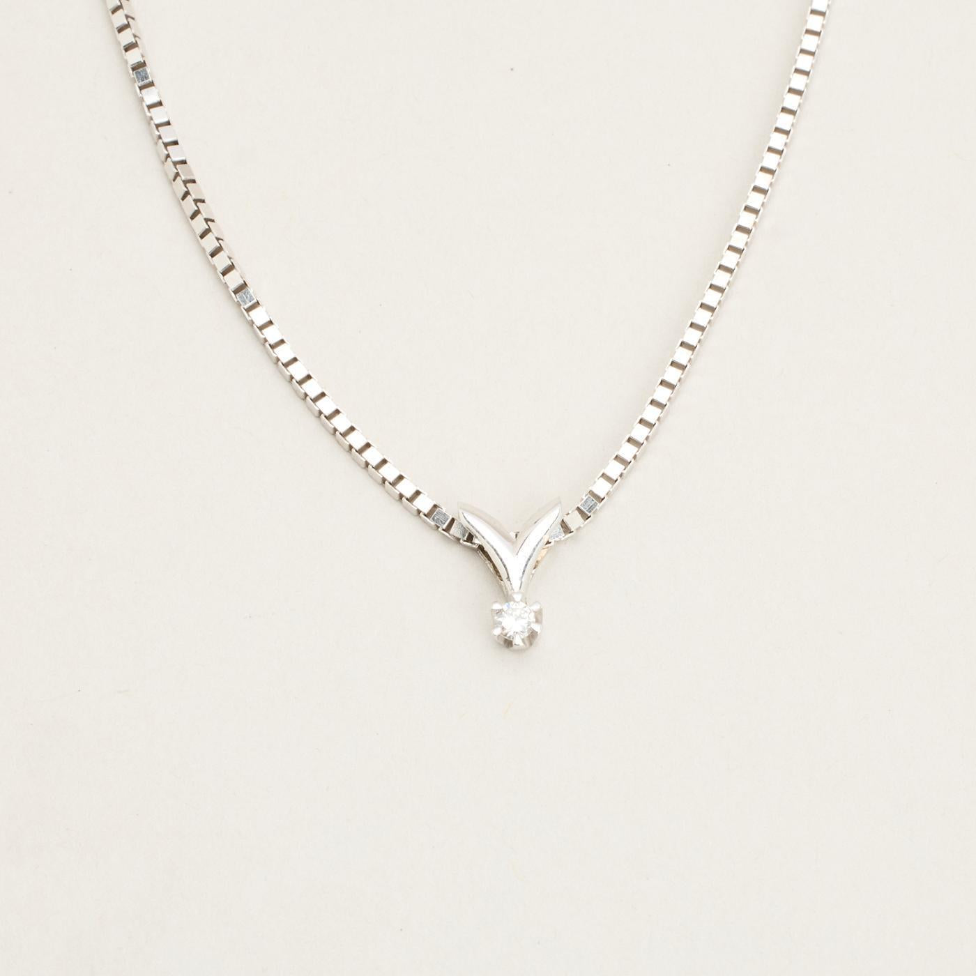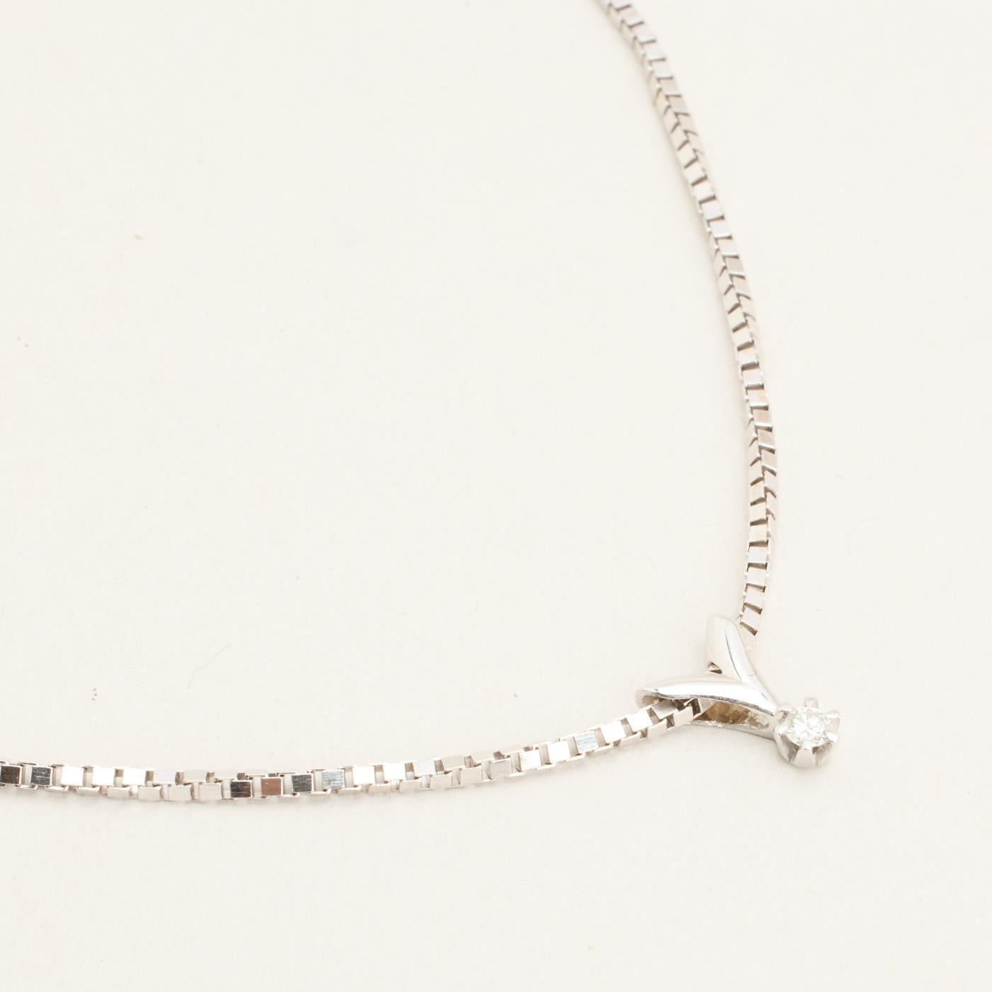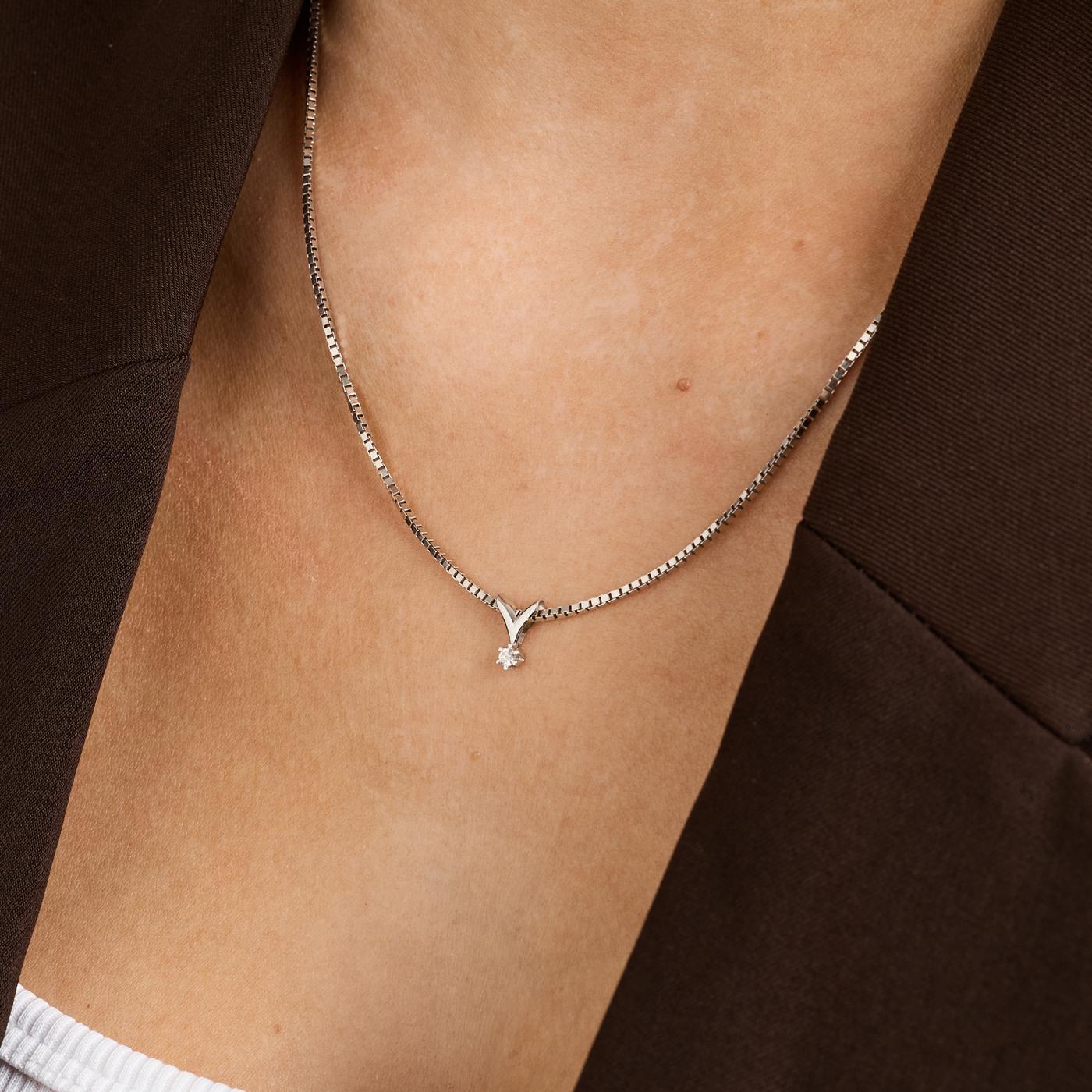 Modell: Veneziansk solitær halskjede med diamant (0.06 ct) i 14 karat, 45.5 cm