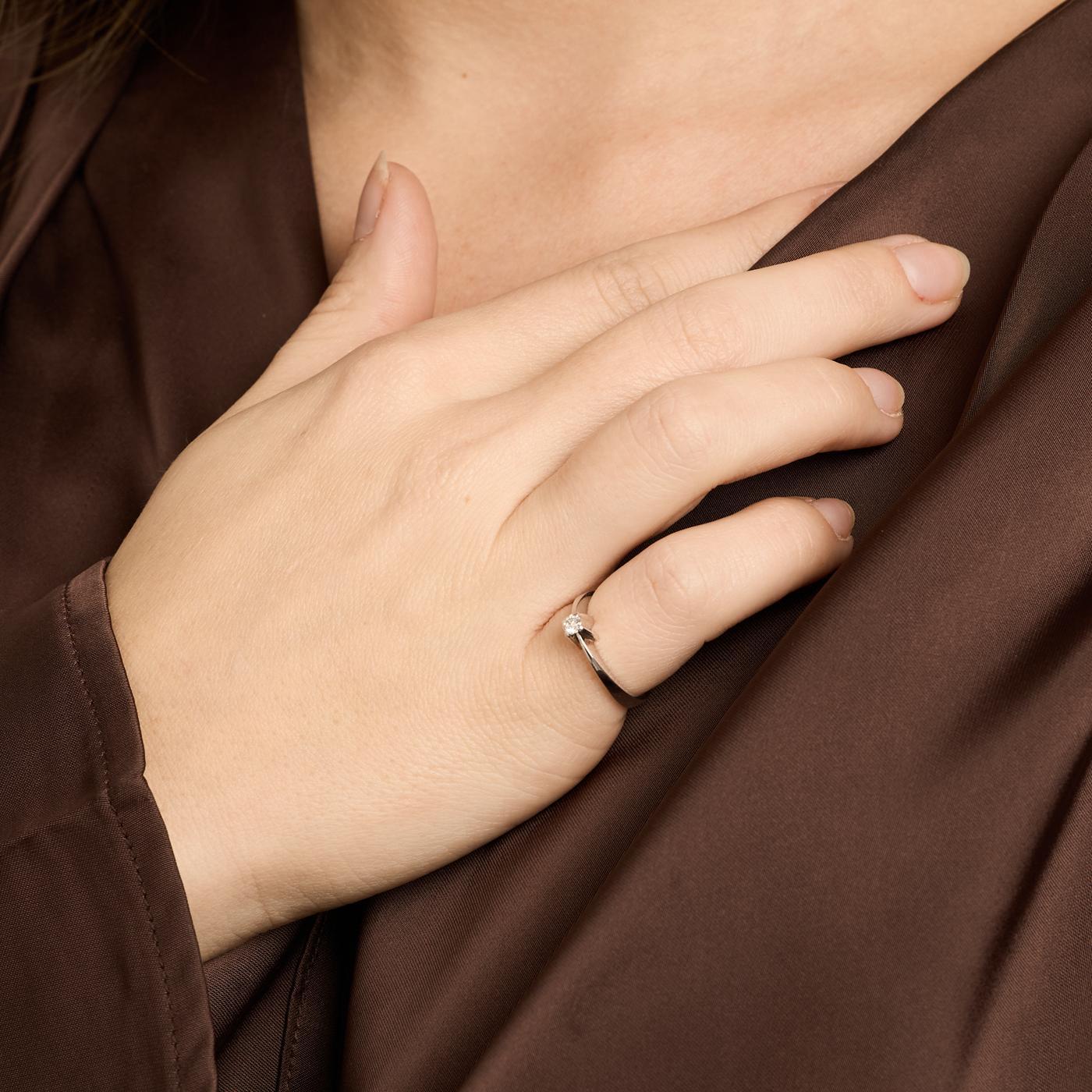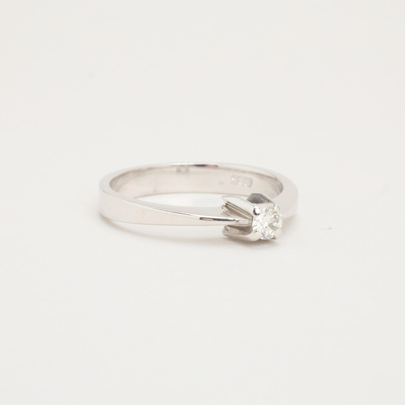 Modell: Solitairring med diamant (0.11 ct) i 14 karat str. 50