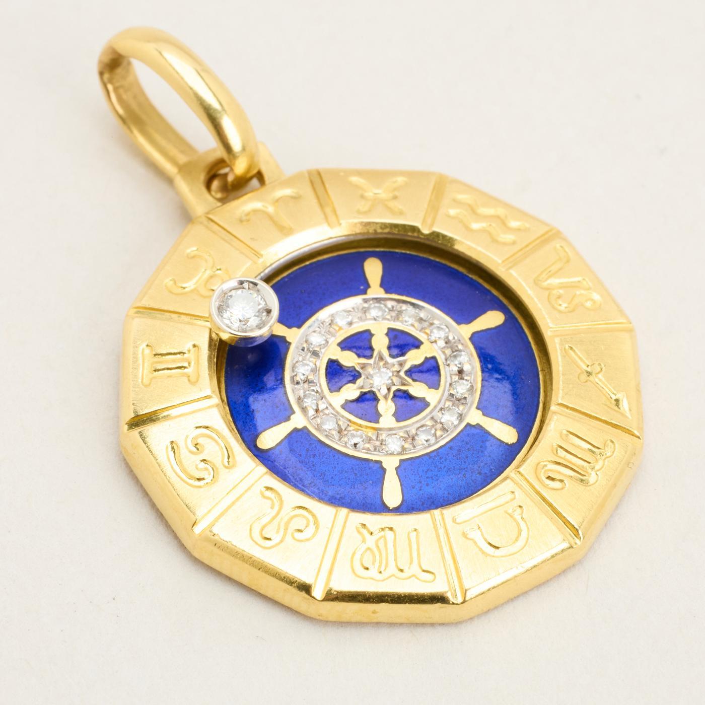 Modell: Anheng med diamant (0.2 ct) i 18 karat med en emalje, 3.8 cm