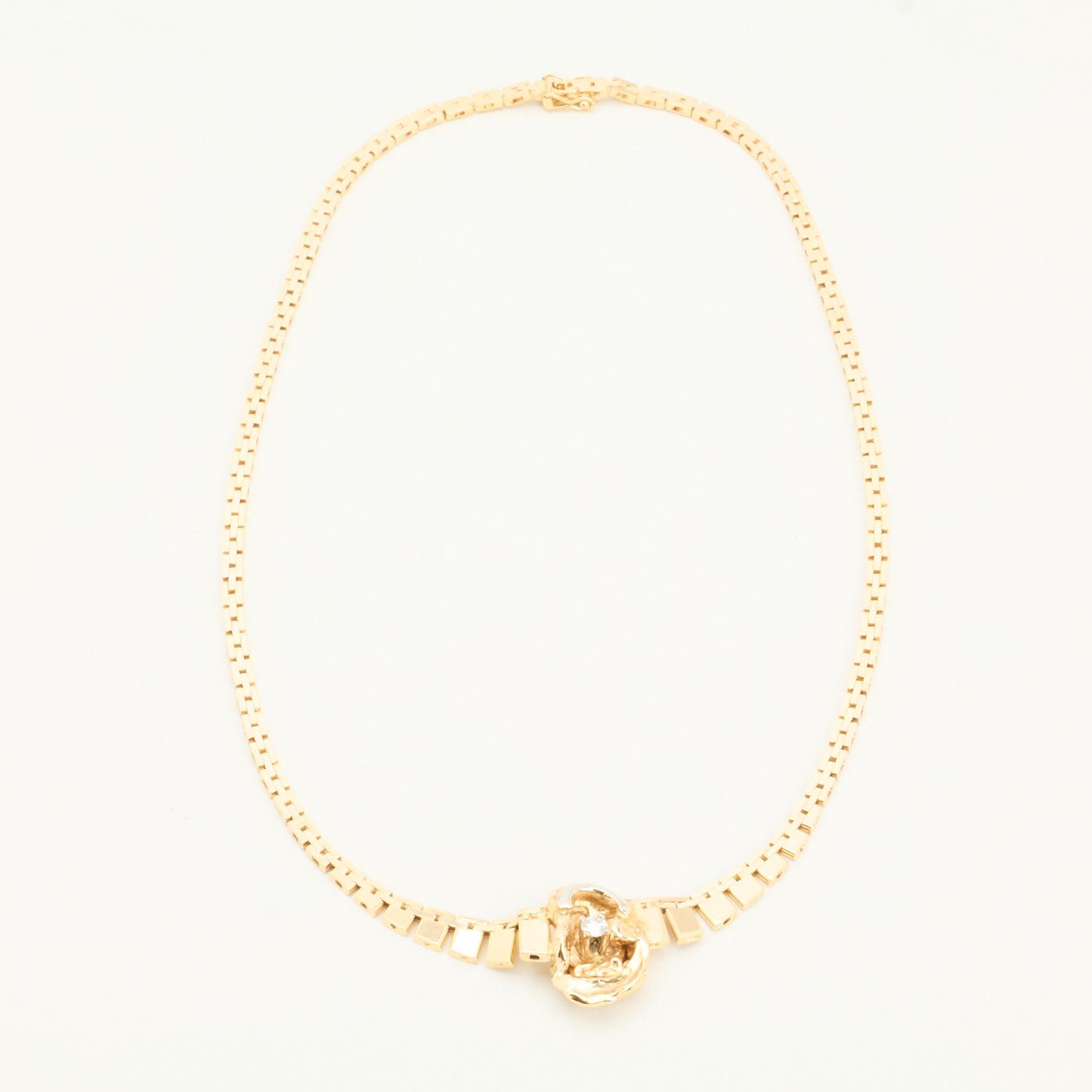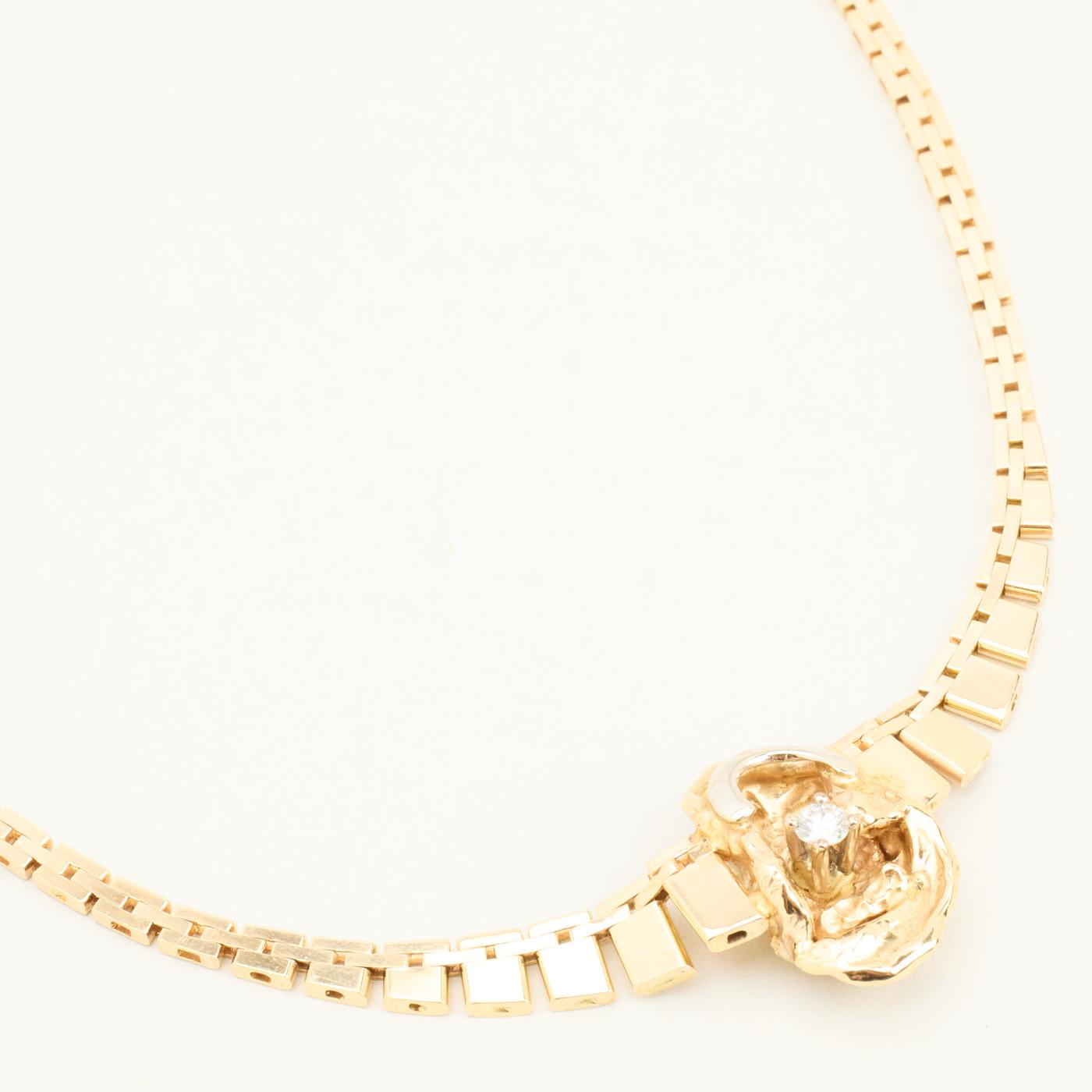 Modell: Murstein Halskjede med diamant (0.16 ct) i 14 karat, 39.5 cm