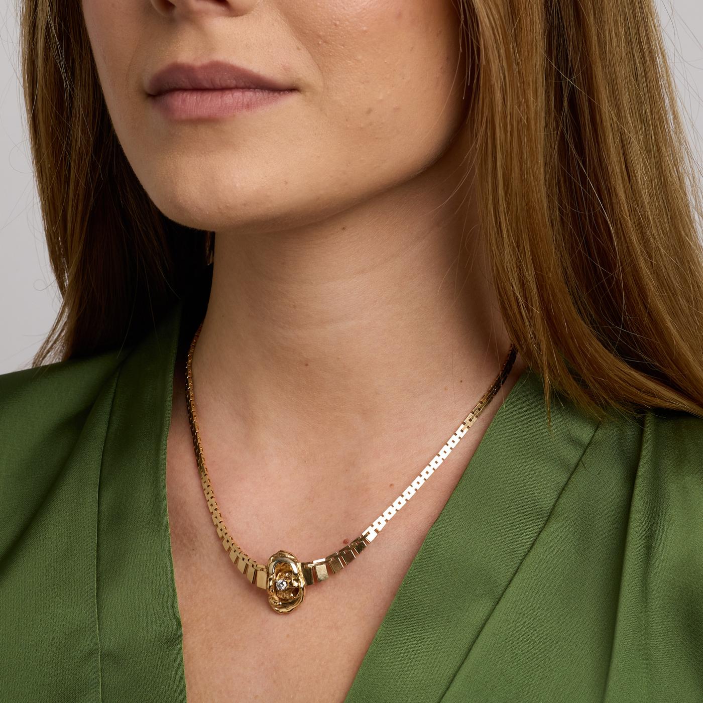 Murstein Halskjede med diamant (0.16 ct) i 14 karat, 39.5 cm