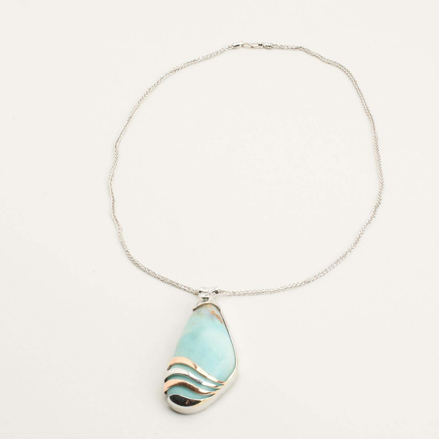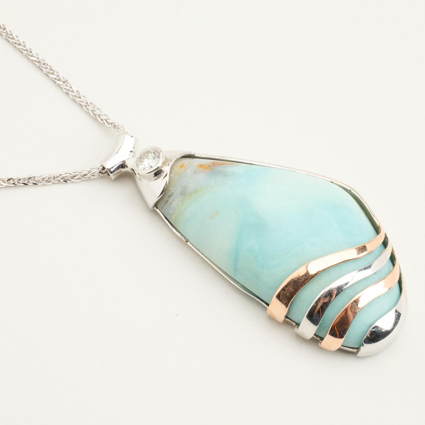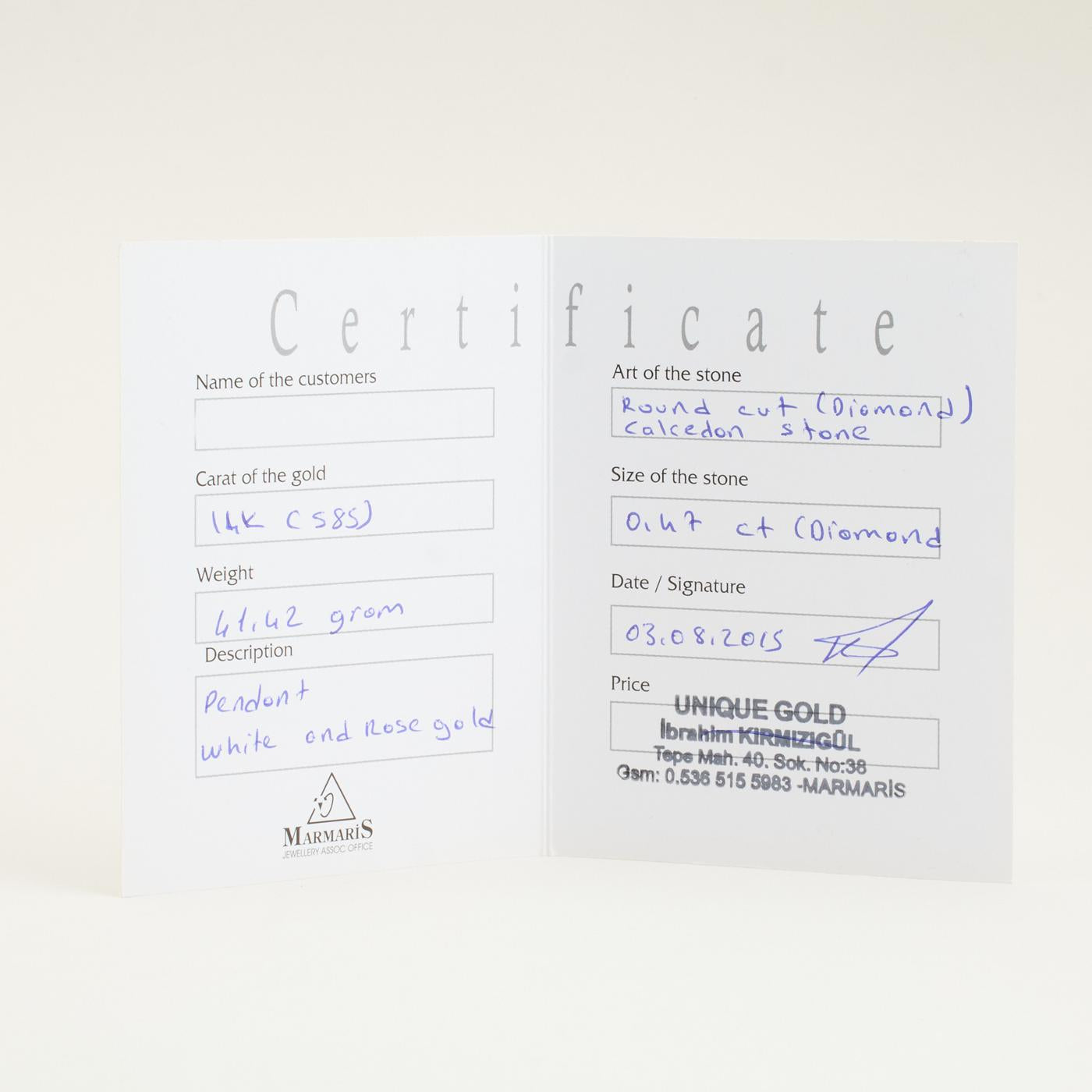 Modell: Halskjede med diamant (0.4 ct) i 14 karat med en kalsedon och diamant, 49 cm