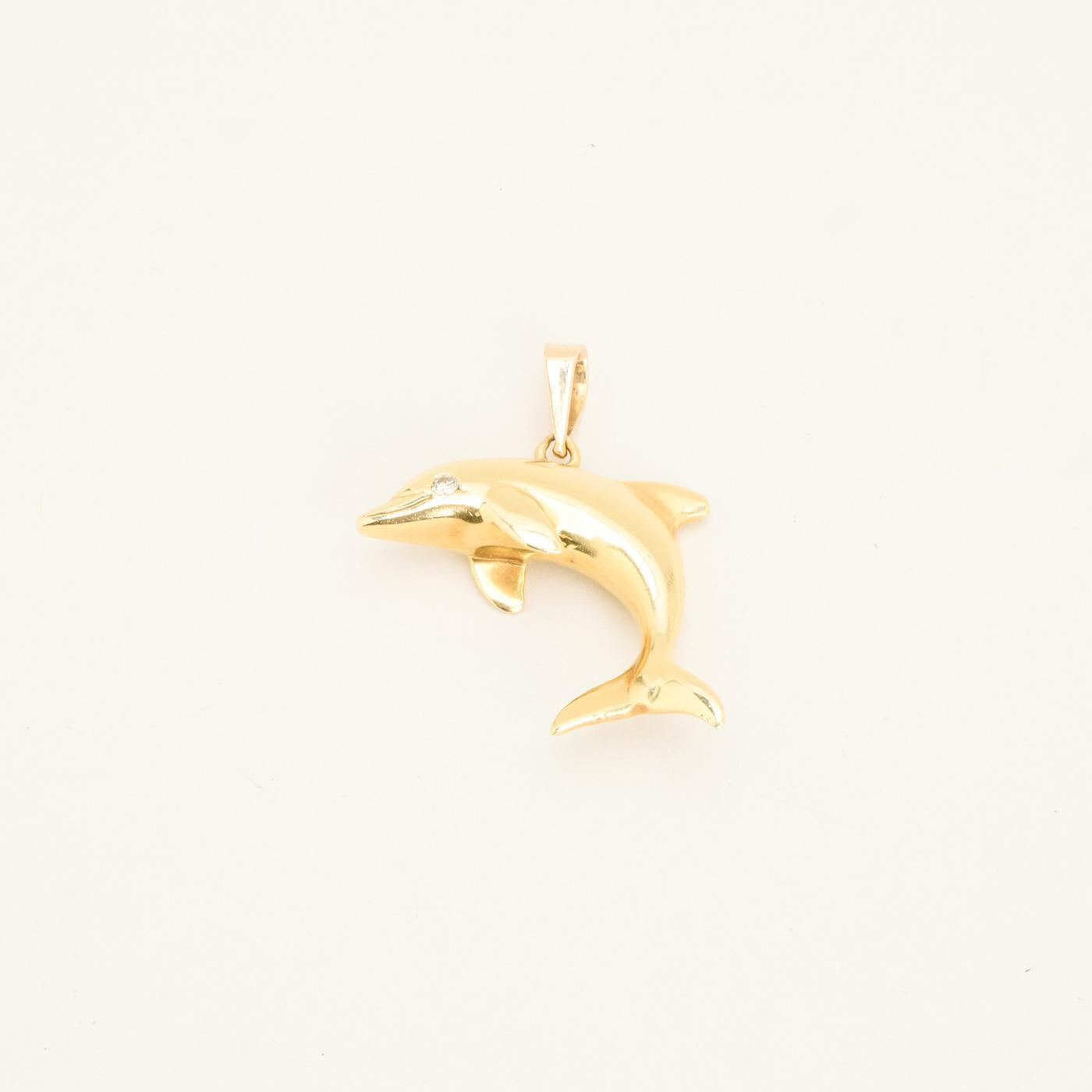 Modell: Anheng med diamant (0.15 ct) i 14 karat, 4 cm