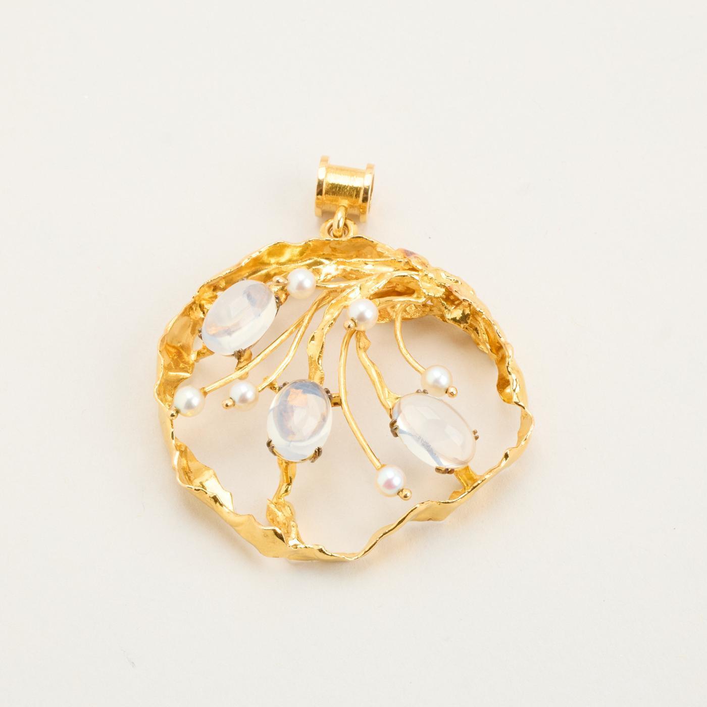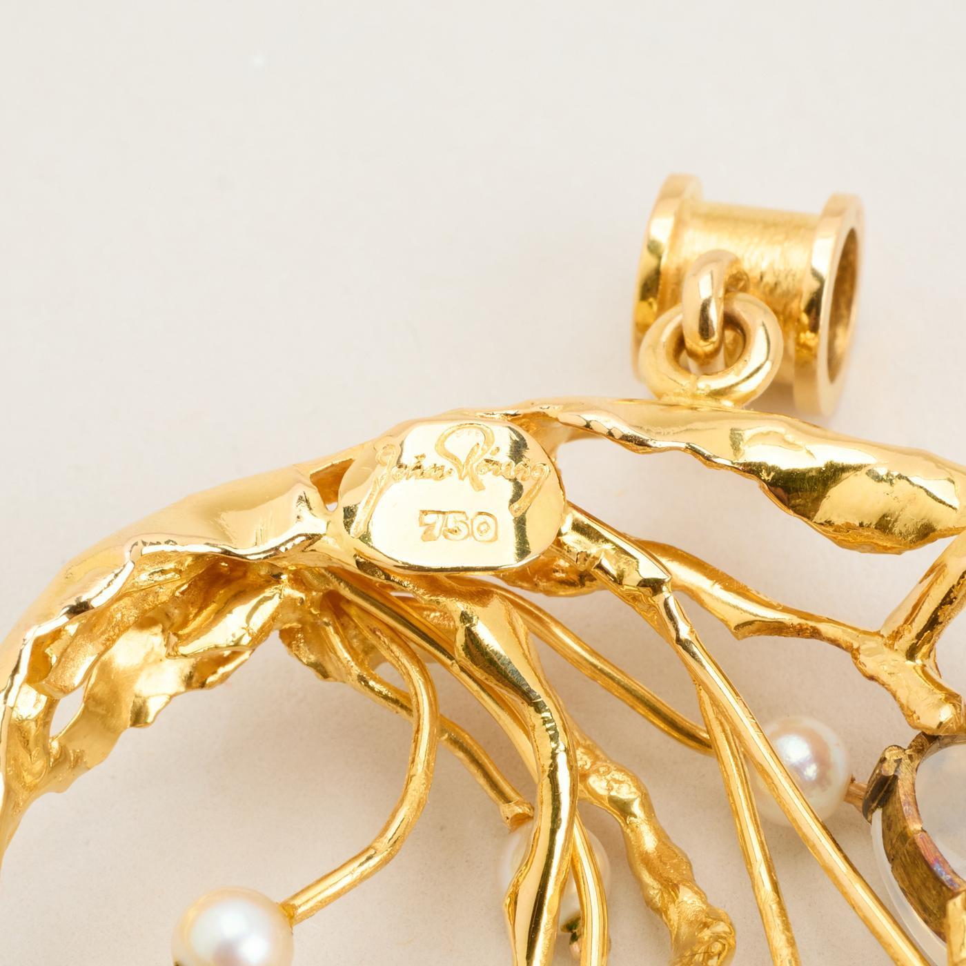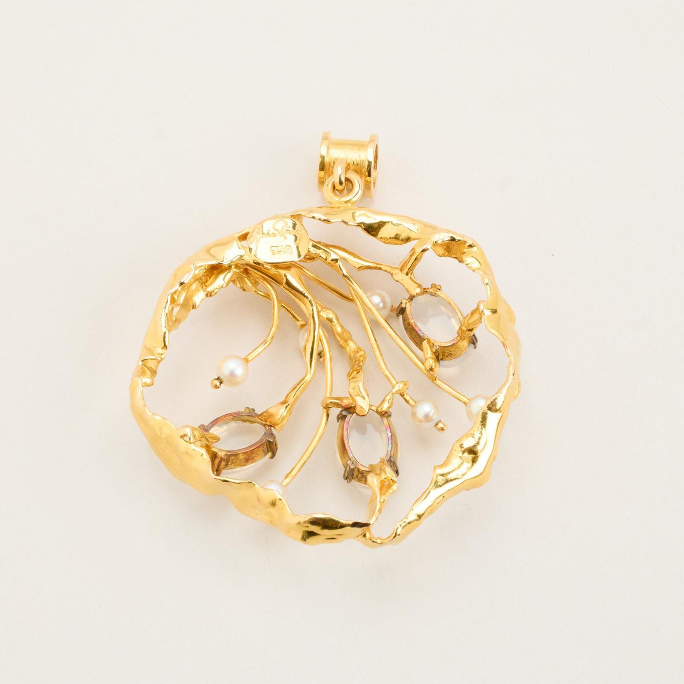 Modell: John Rørvig Anheng i 18 karat med en månesten och perle, 6 cm