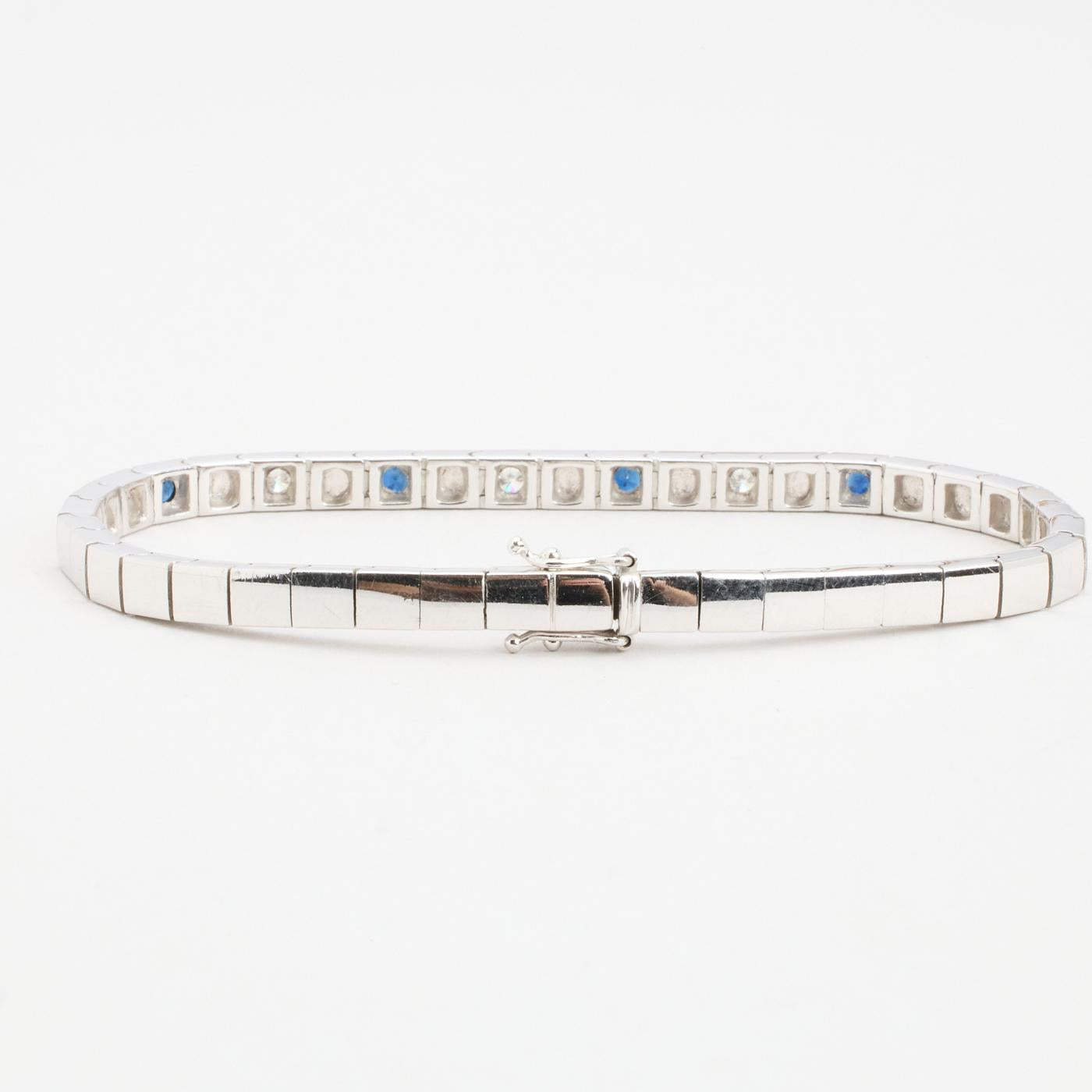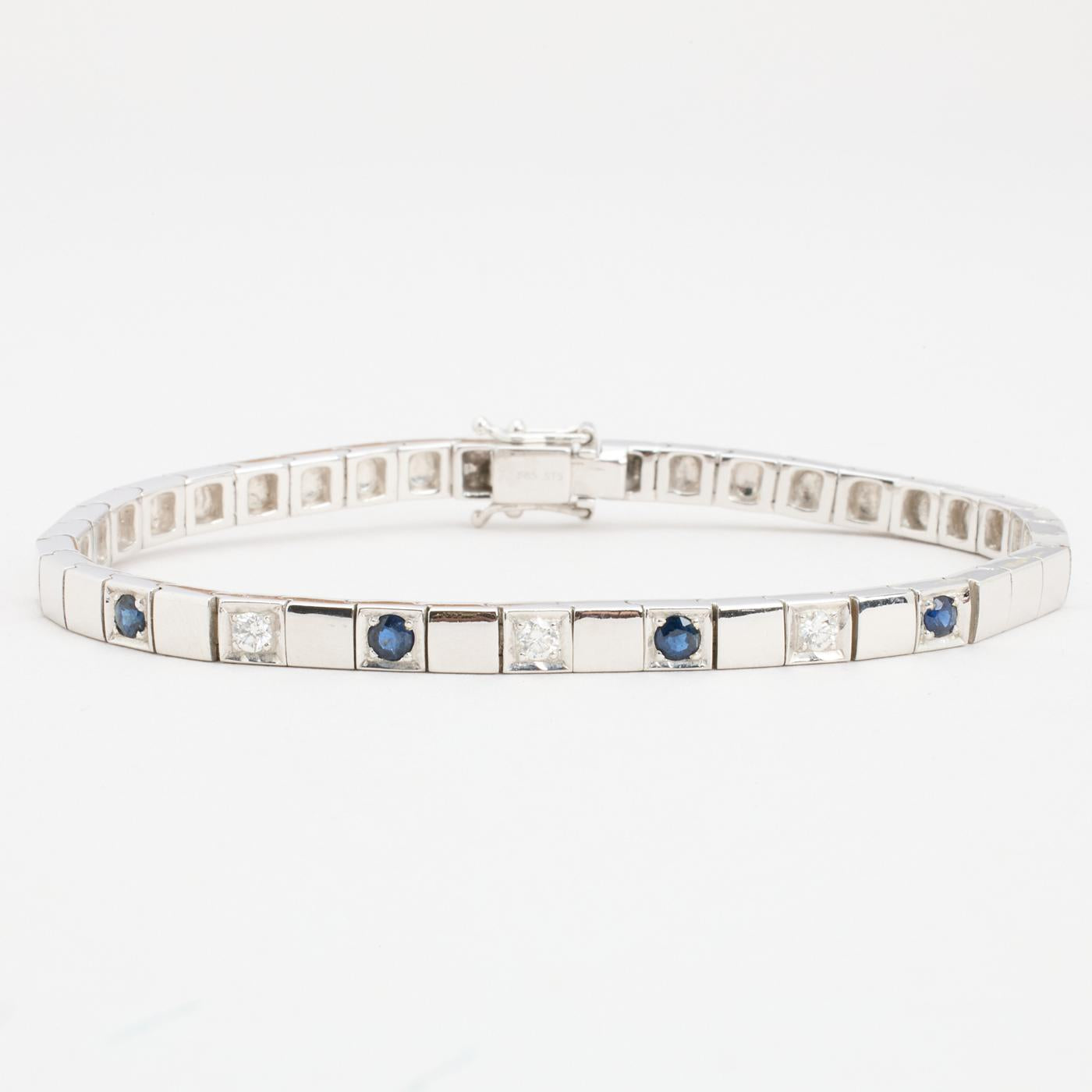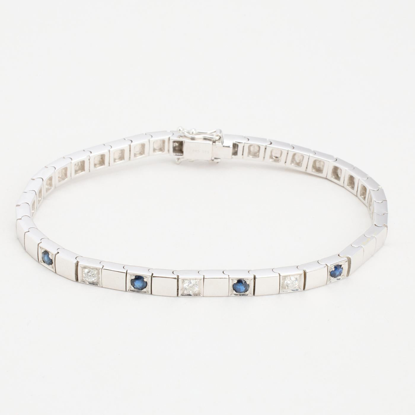 Modell: Tennisarmbånd med diamant (0.27 ct) i 14 karat med en safir, 18 cm