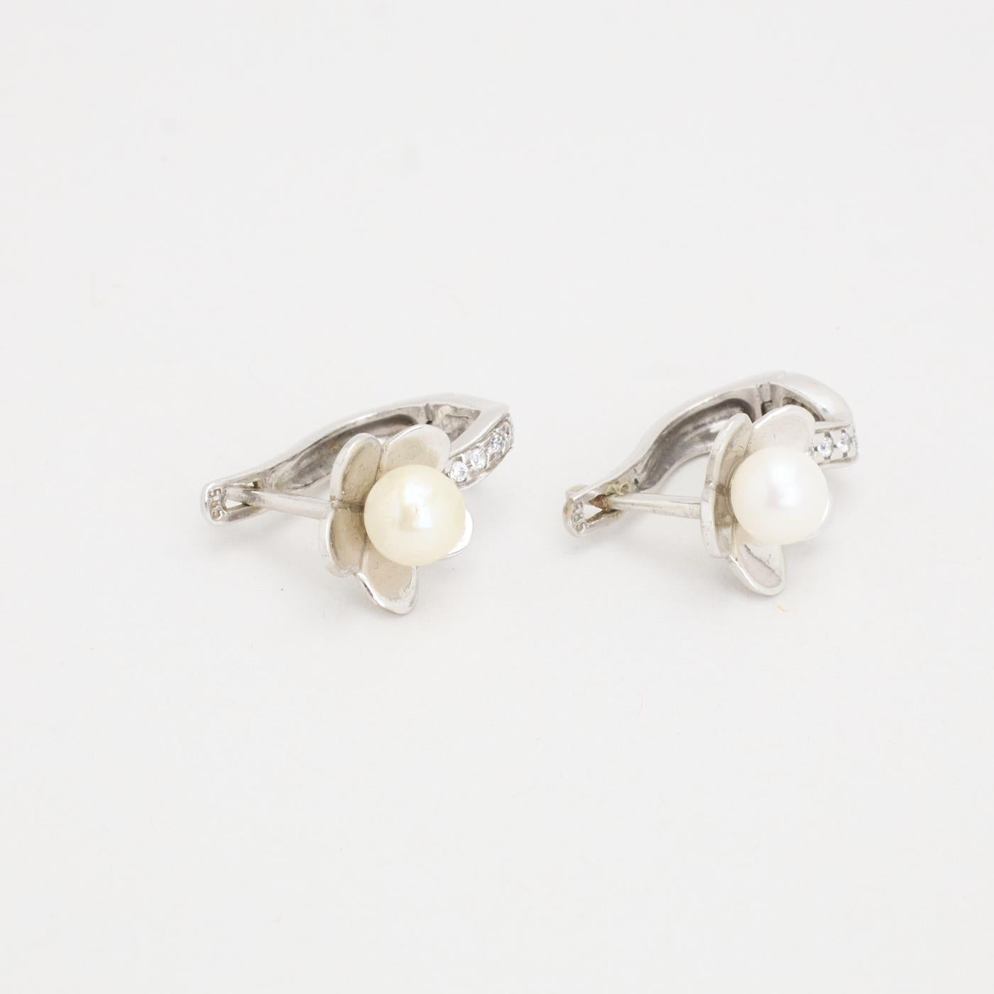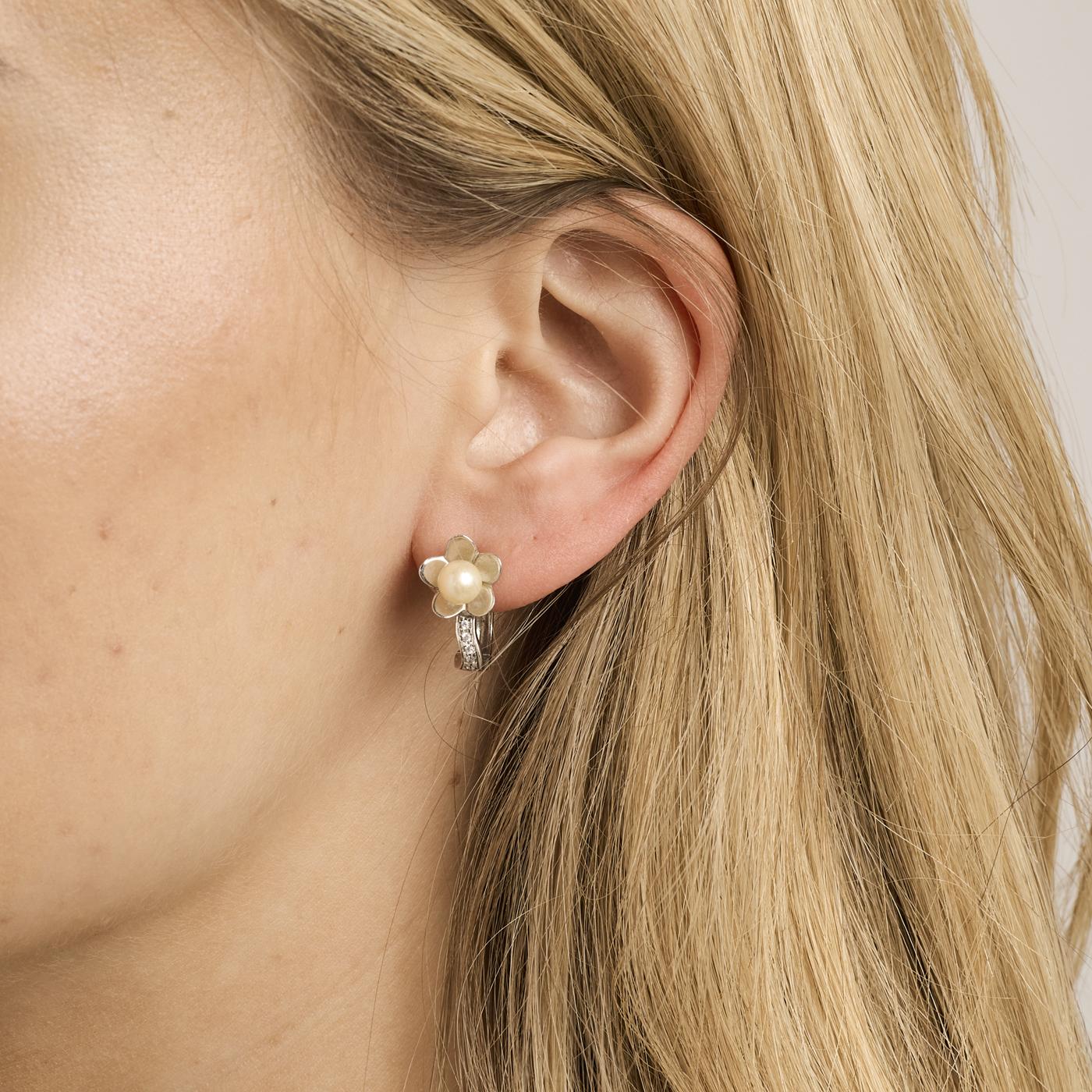 Blomst Øredobber i 14 karat med en Zirkonia och perle, 1.8 cm