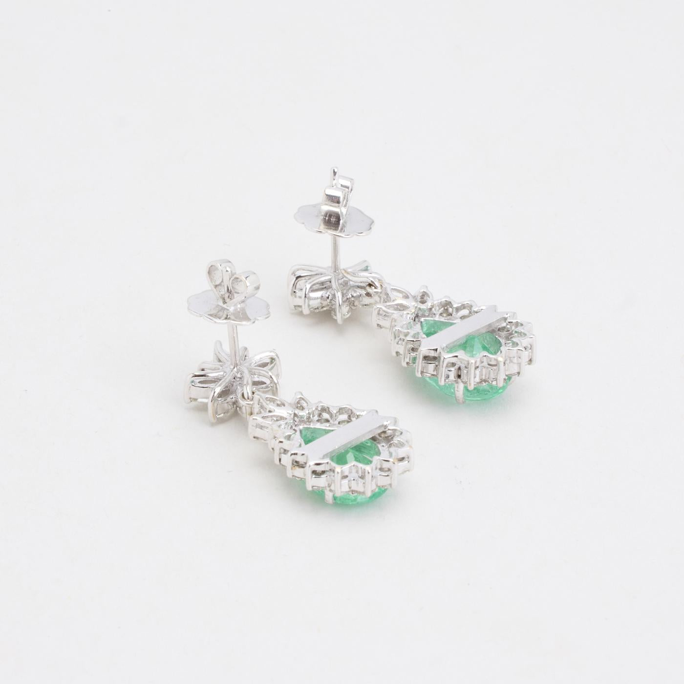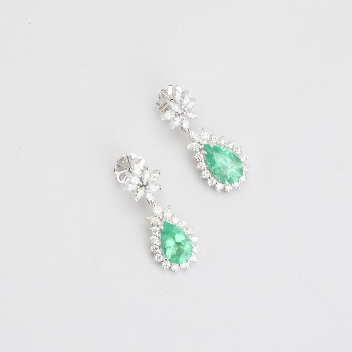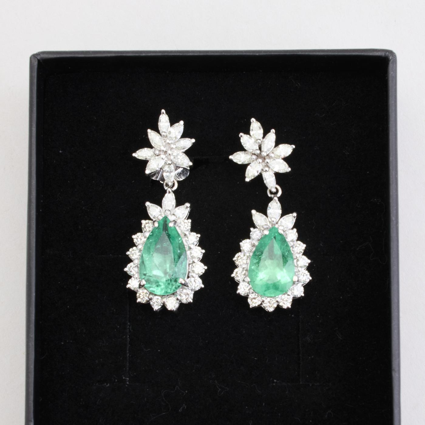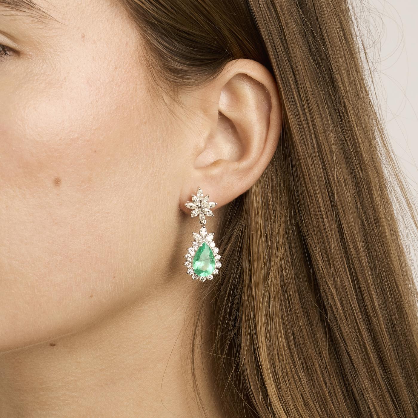 Modell: Øredobber med diamant (2.46 ct) i 18 karat med en smaragd, 3.5 cm