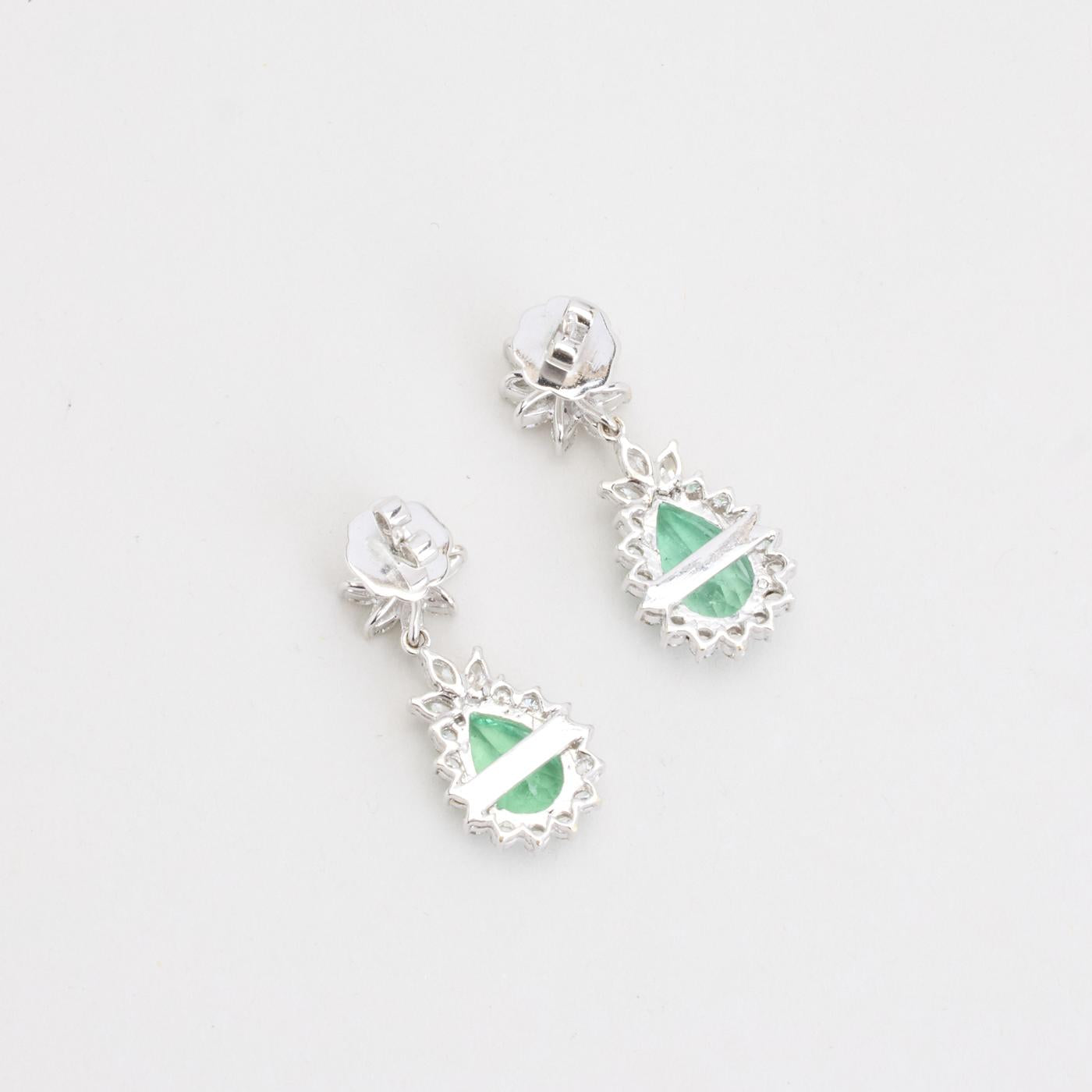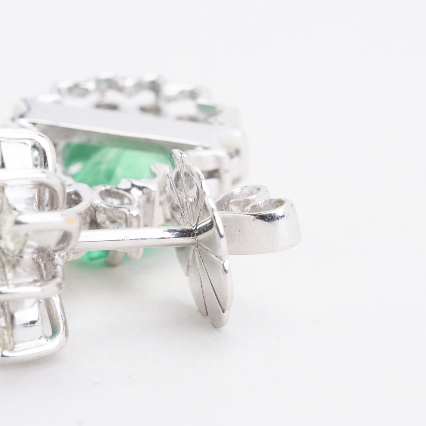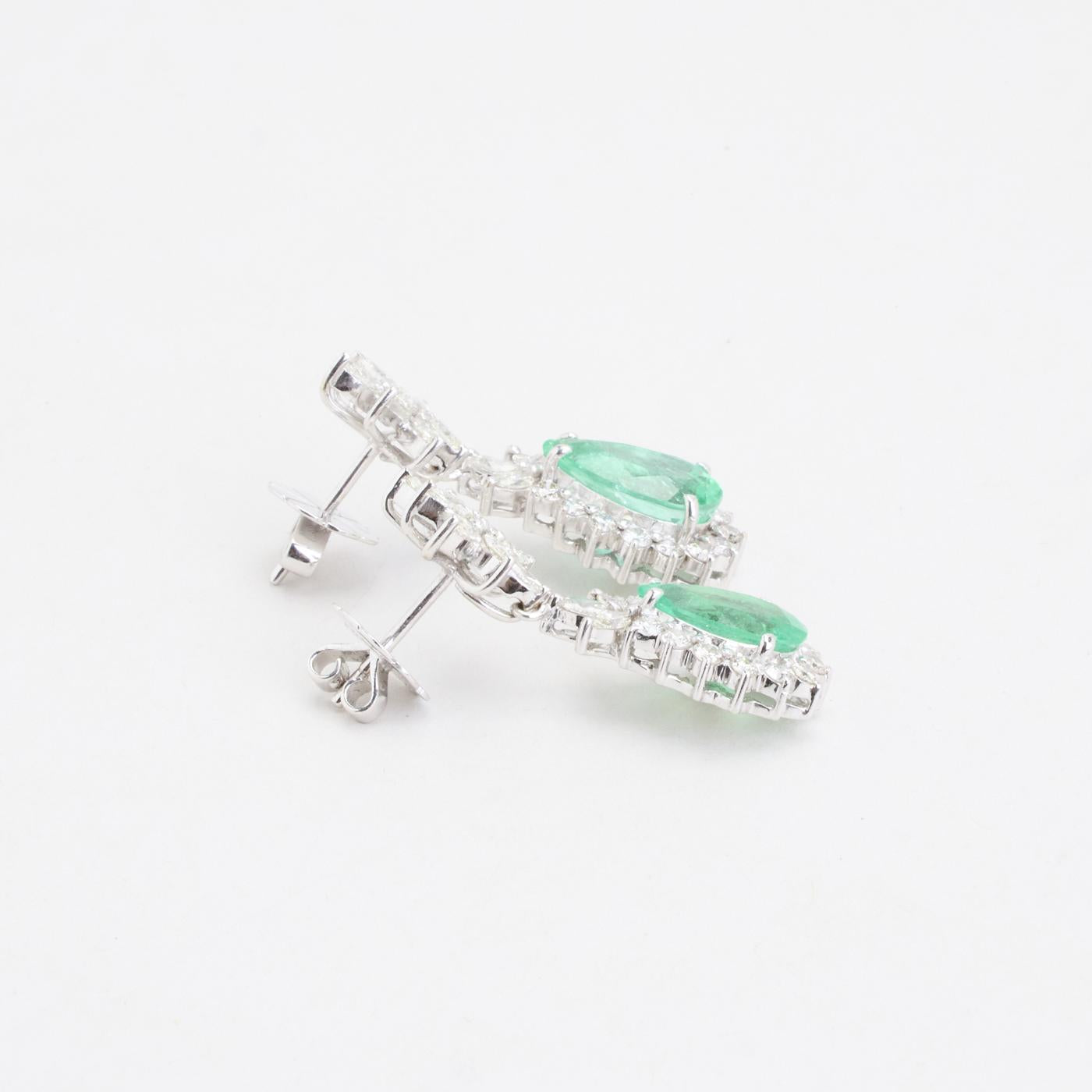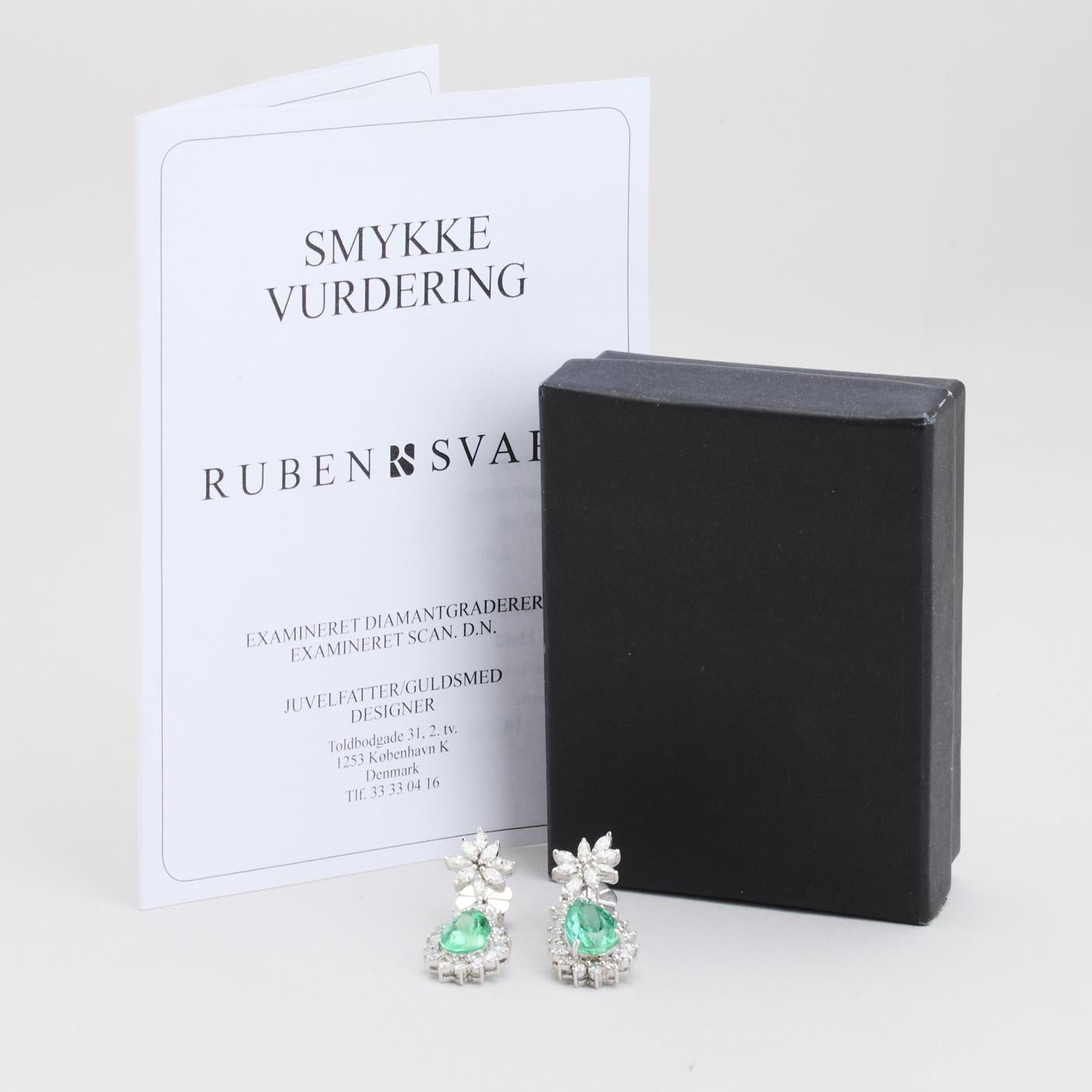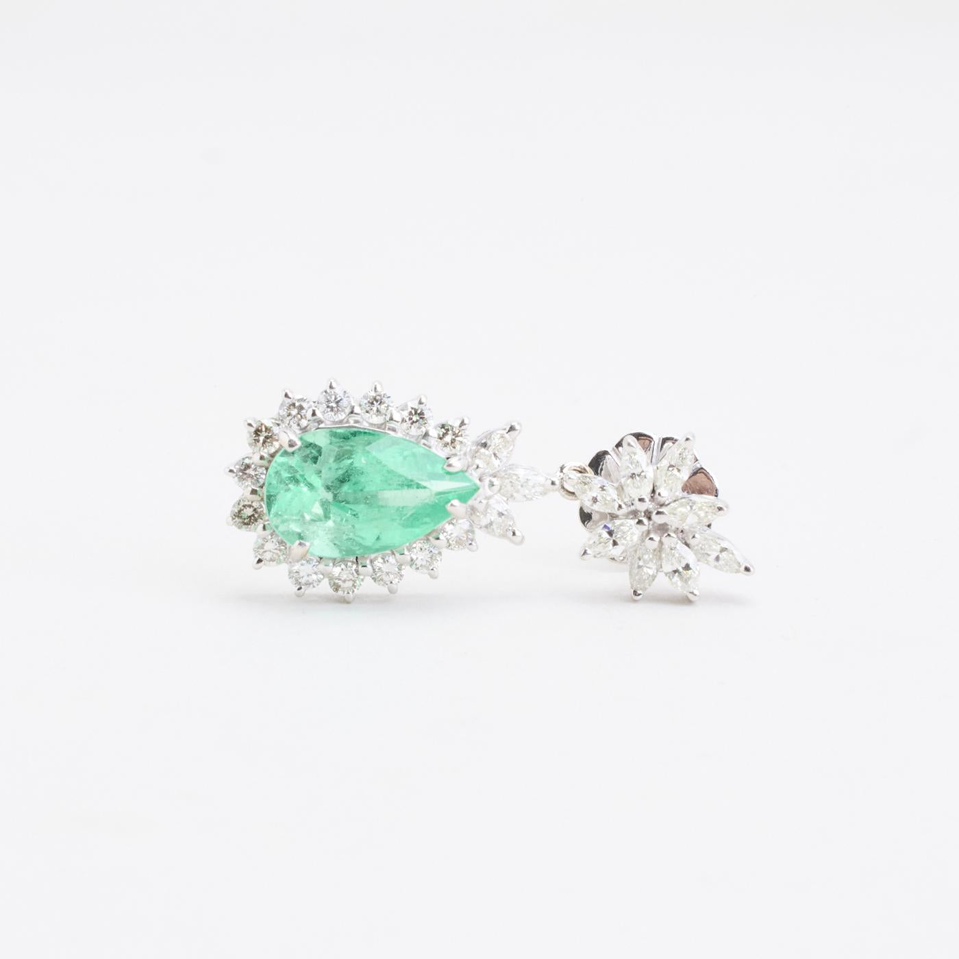 Modell: Øredobber med diamant (2.46 ct) i 18 karat med en smaragd, 3.5 cm