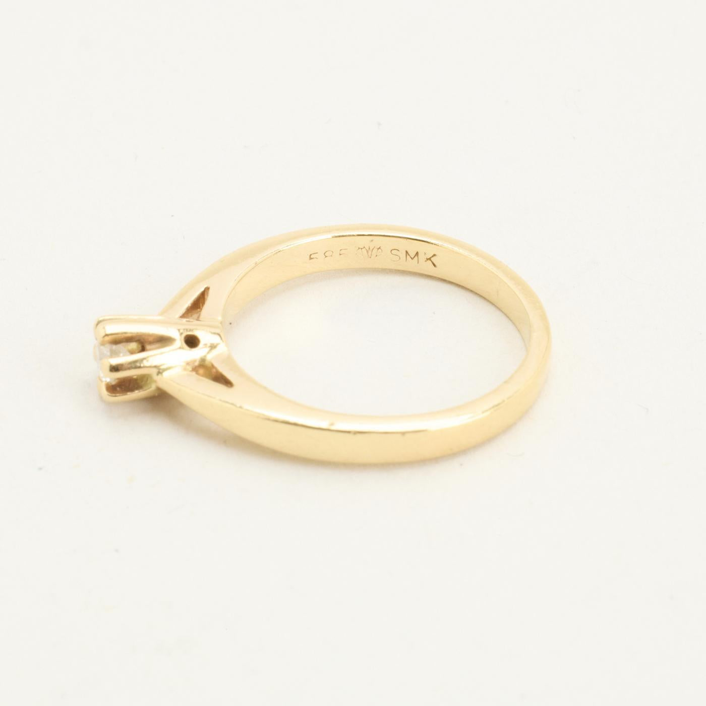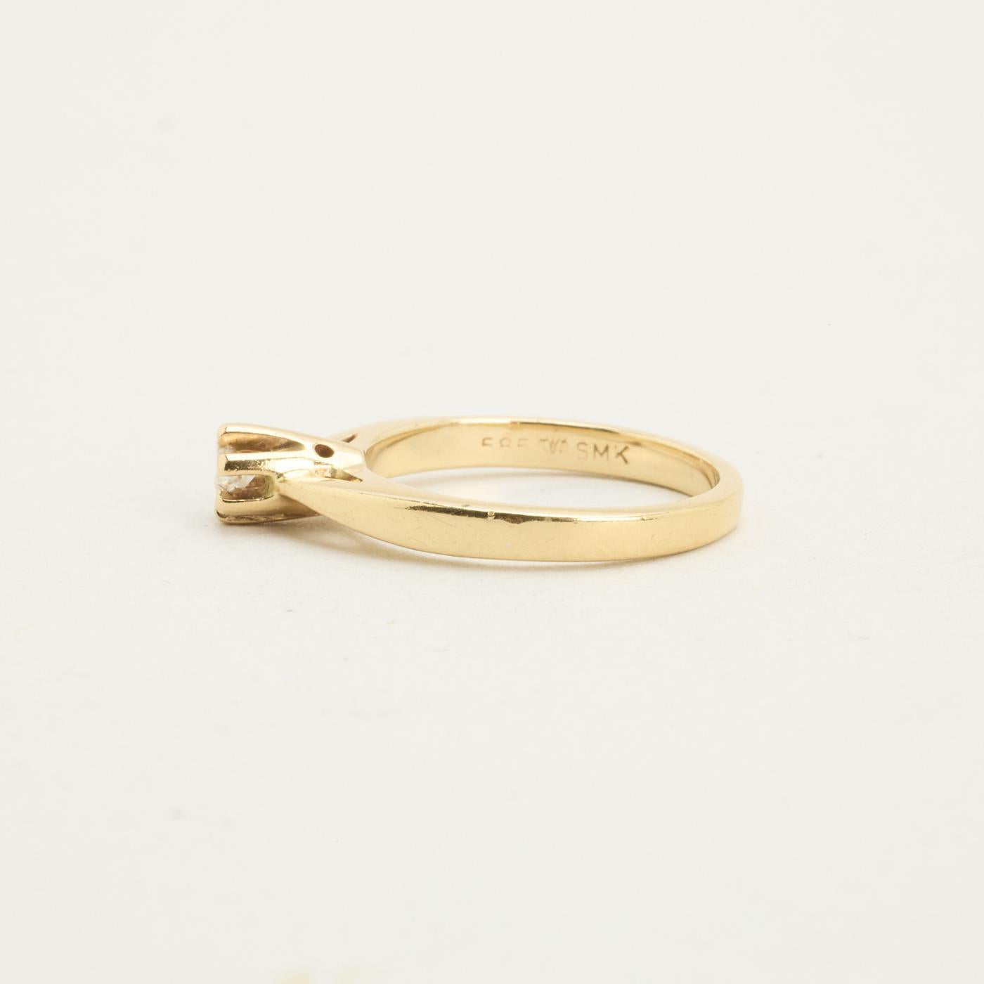 Solitairring med diamant (0.11 ct) i 14 karat str. 50