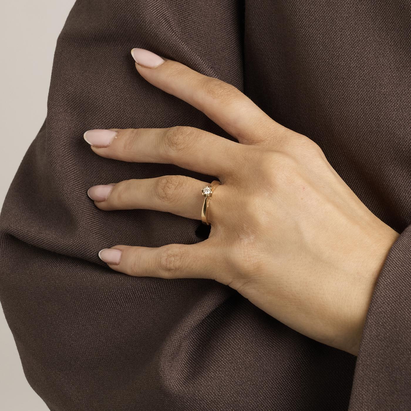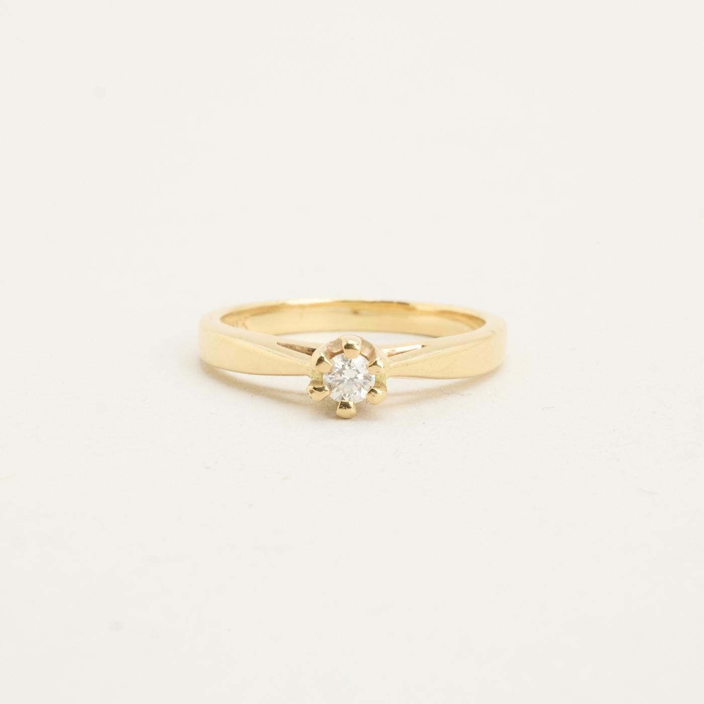 Modell: Solitairring med diamant (0.11 ct) i 14 karat str. 50
