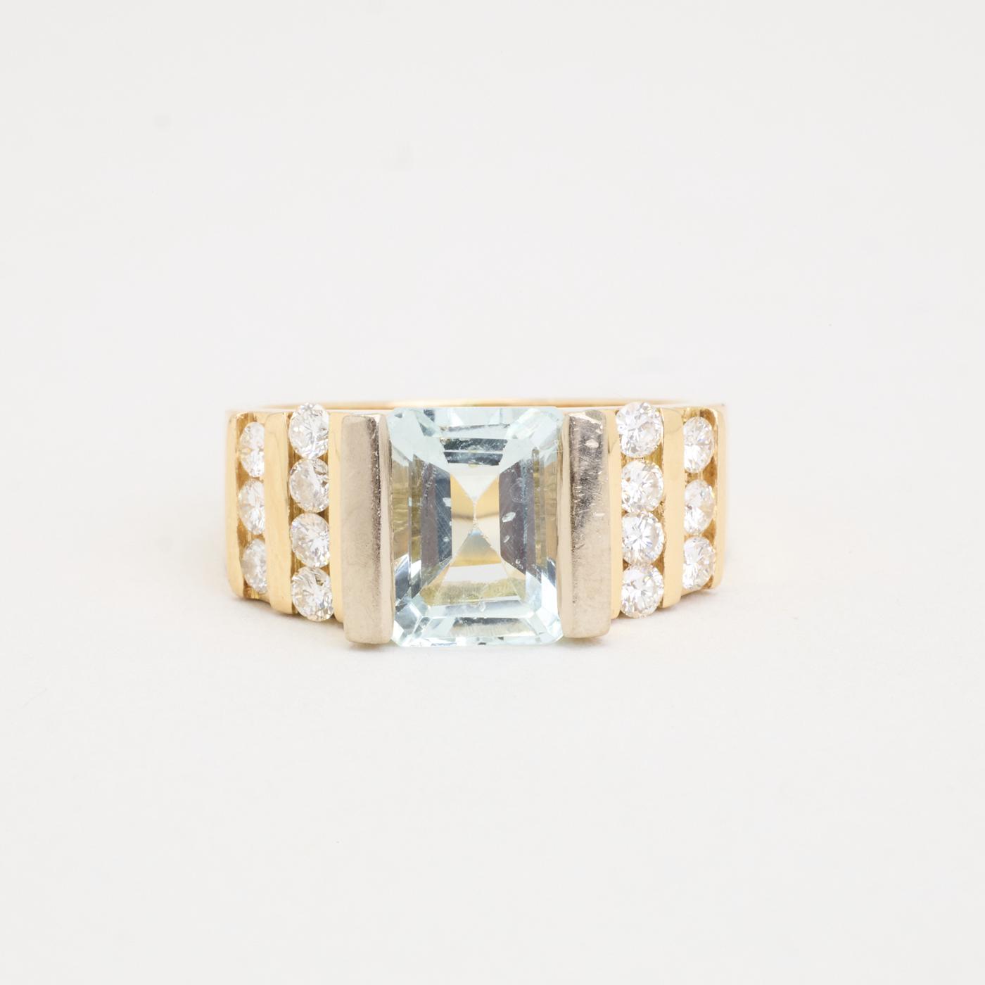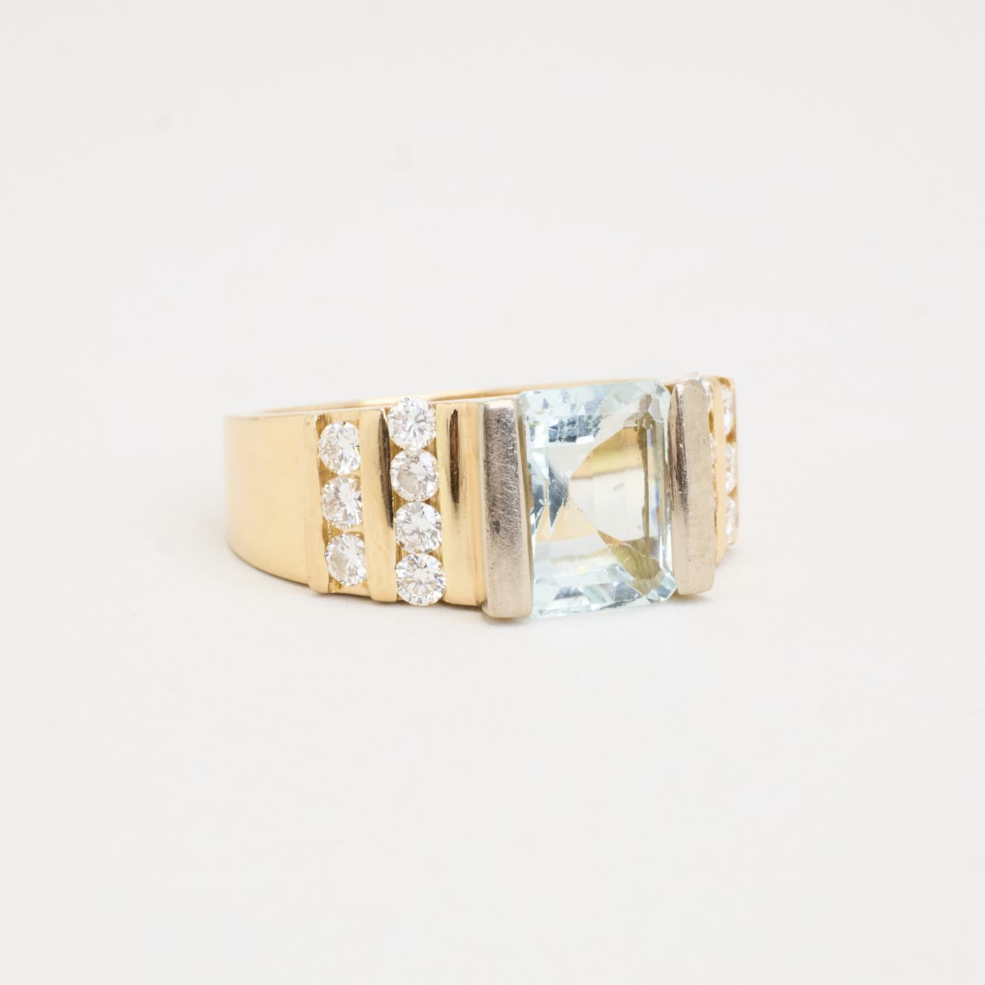 Modell: Gypsyring med diamant (0.44 ct) i 18 karat med en akvamarin str. 53
