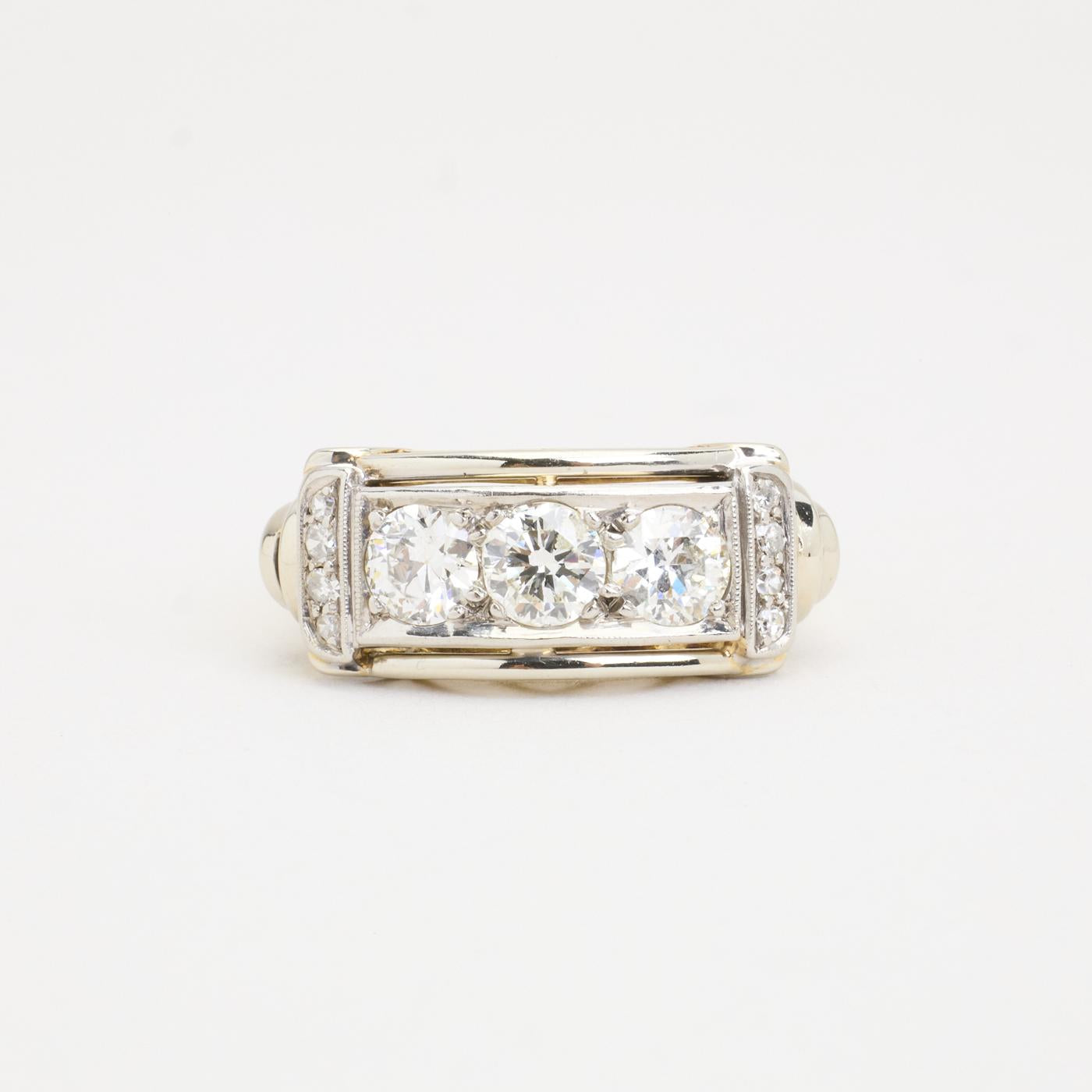 Modell: Tre stein ring med diamant (1.7 ct) i 14 karat str. 60