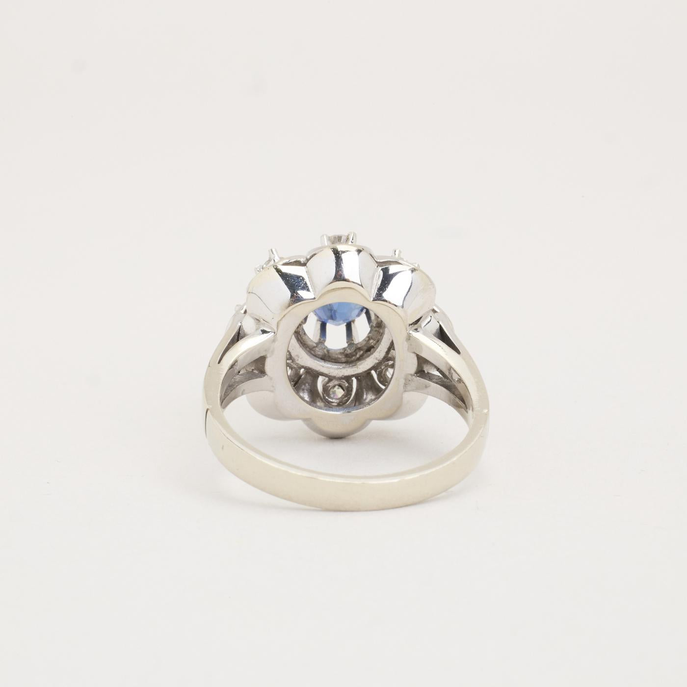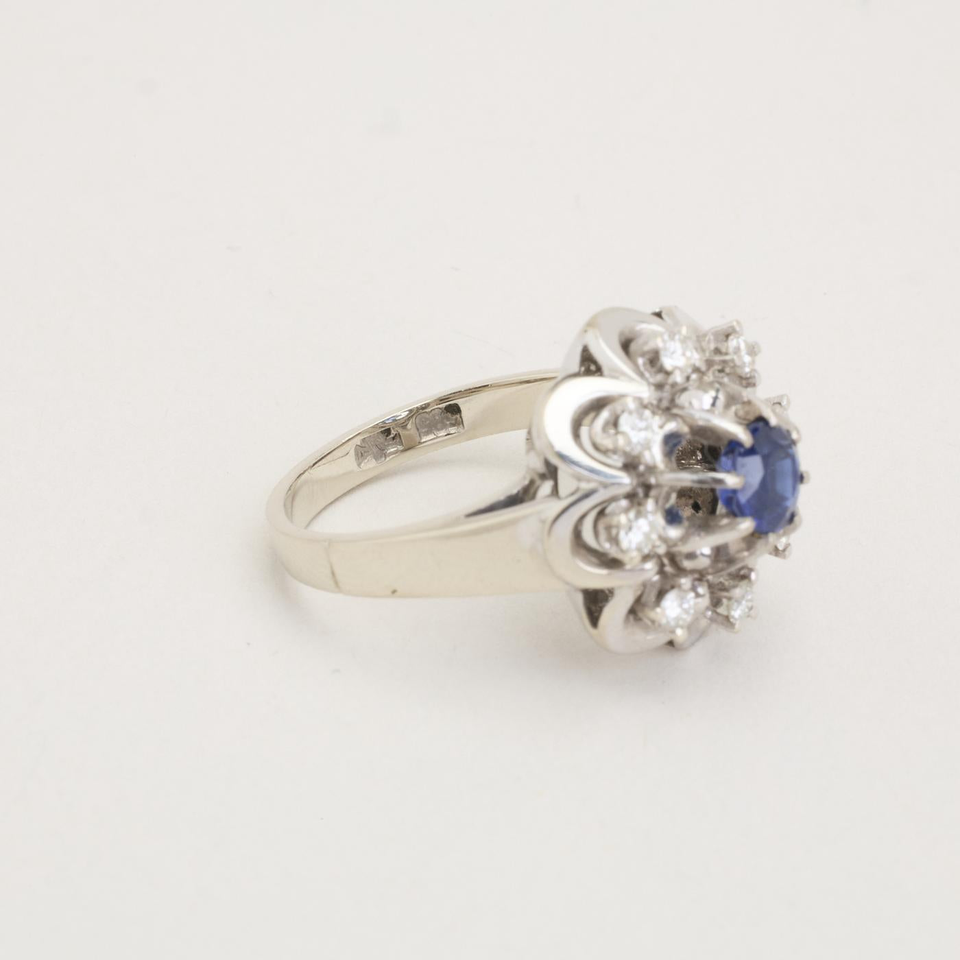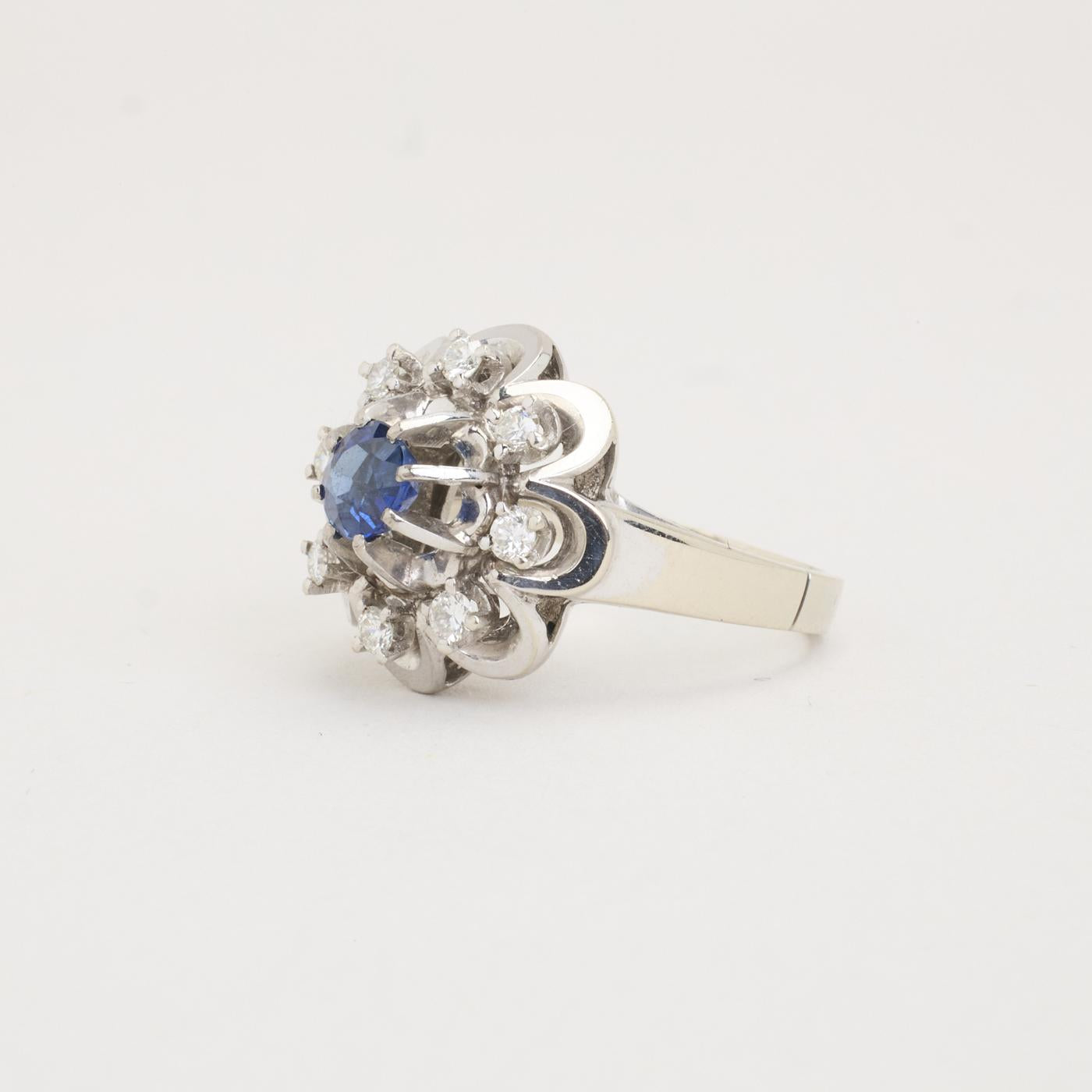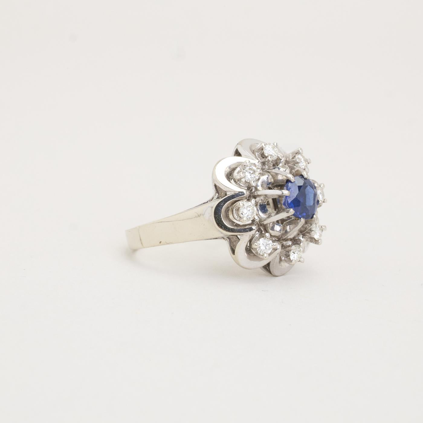 Modell: Rosettring med diamant (0.25 ct) i 14 karat med en safir str. 51
