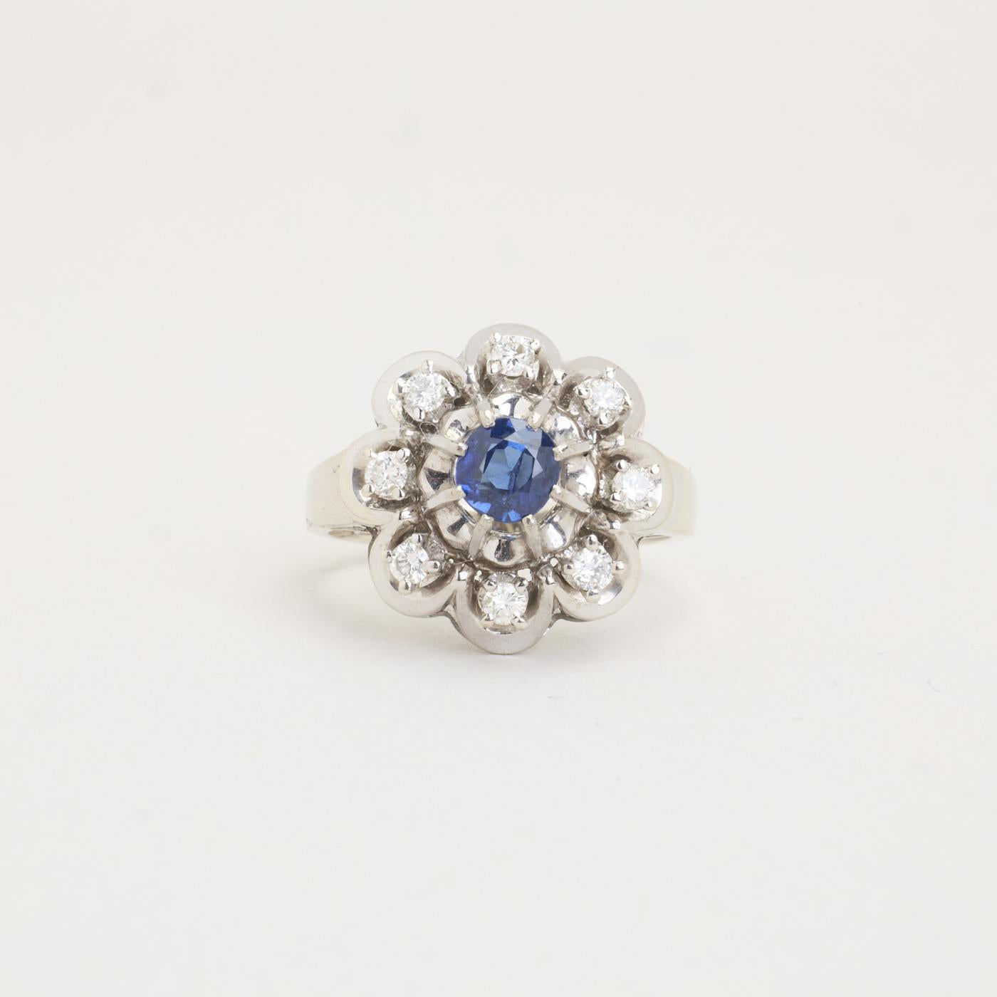 Rosettring med diamant (0.25 ct) i 14 karat med en safir str. 51