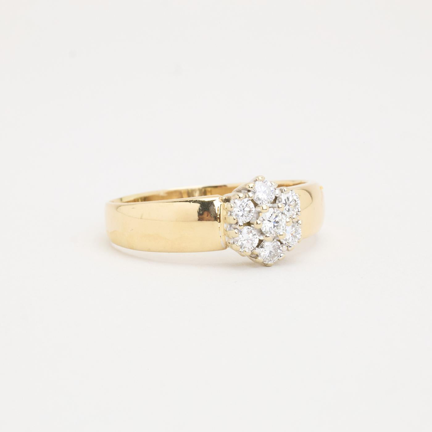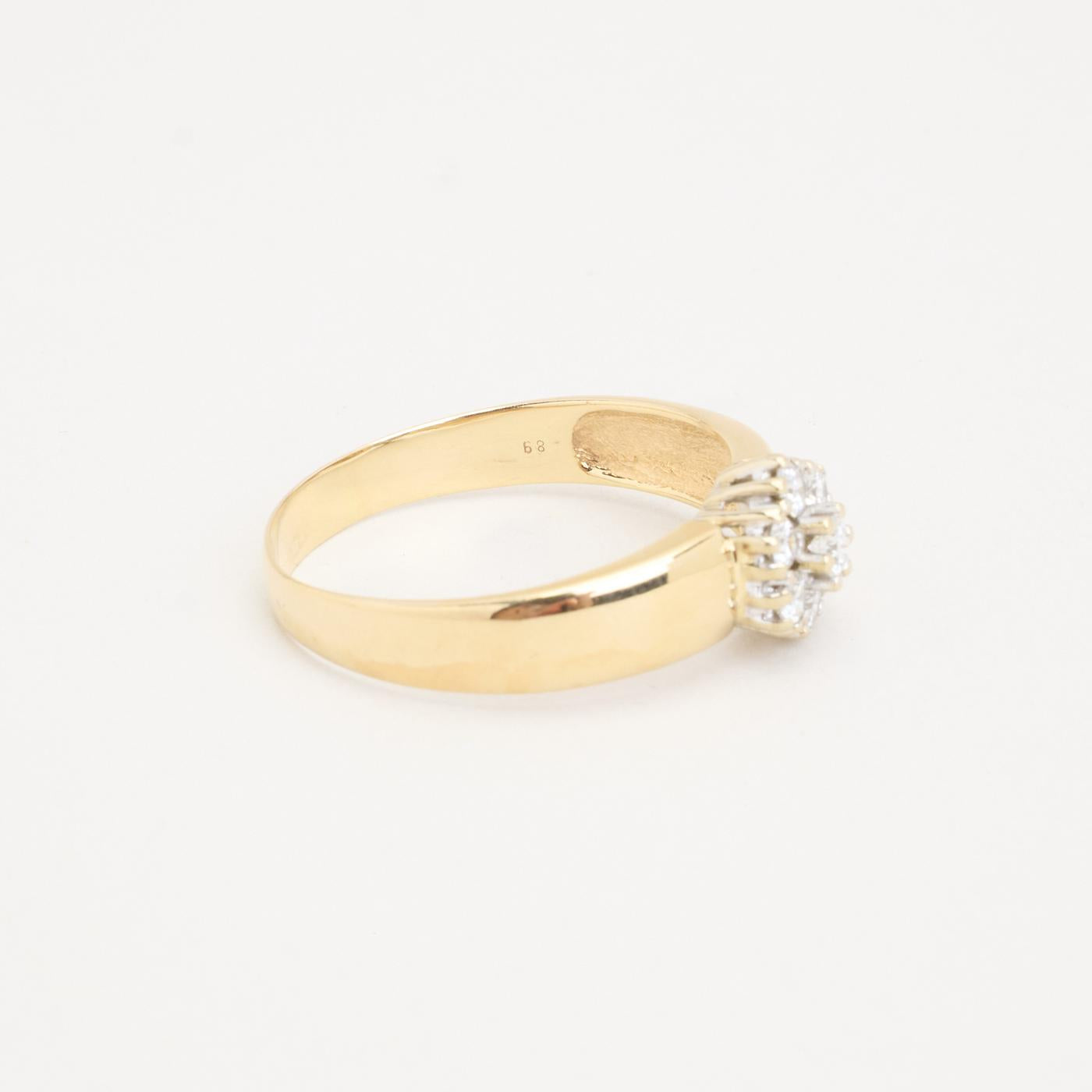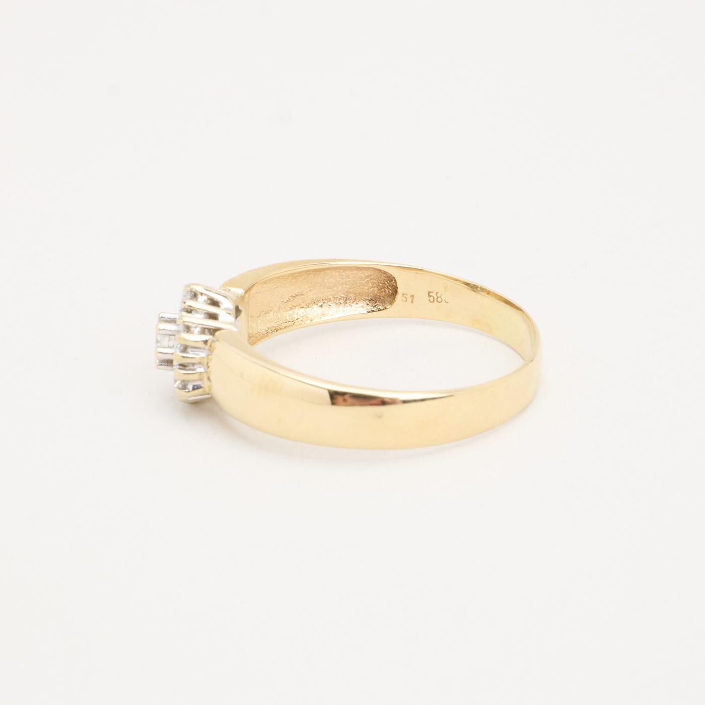 Rosettring med diamant (0.81 ct) i 14 karat str. 66