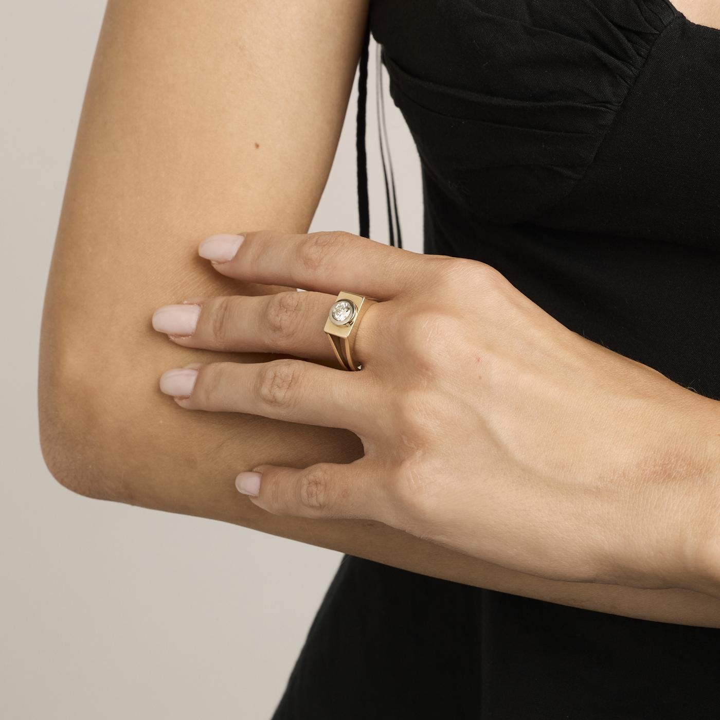 Modell: Signaturring med diamant (0.51 ct) i 14 karat str. 55