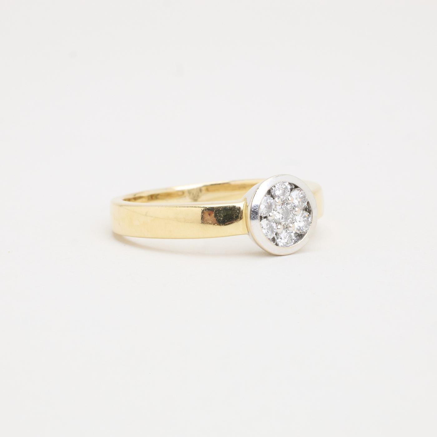 Rosettring med diamant (0.28 ct) i 14 karat str. 56