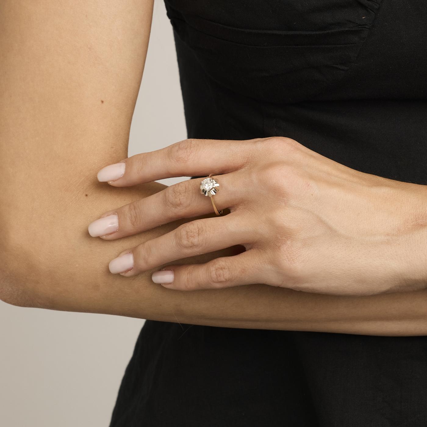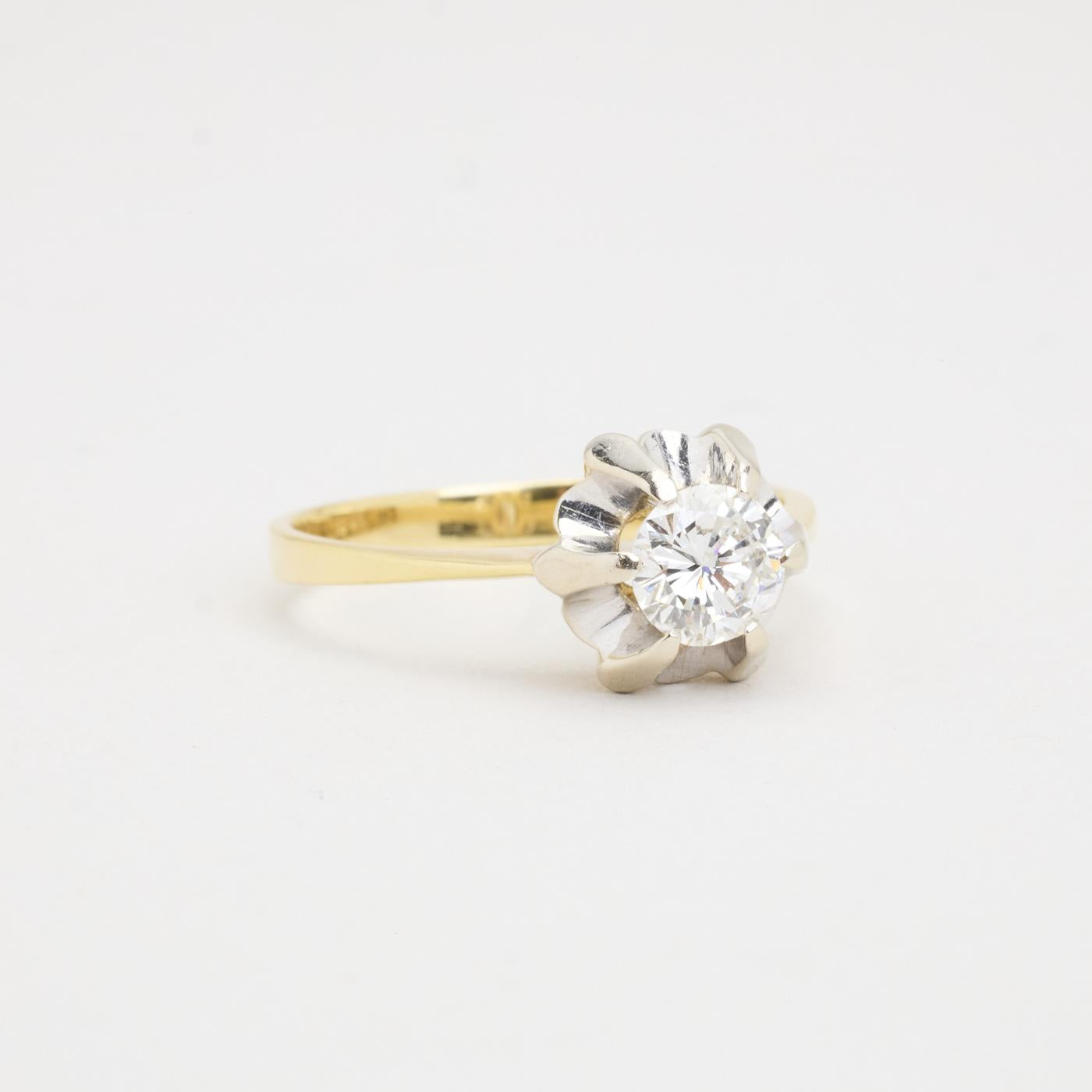 Modell: Solitairring med diamant (0.75 ct) i 14 karat str. 57