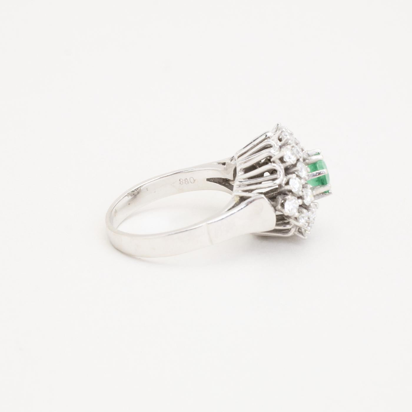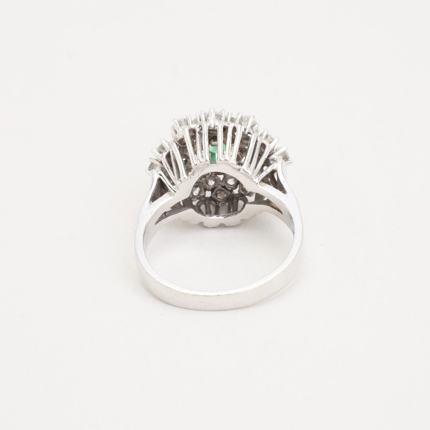 Modell: Rosettring med diamant (0.95 ct) i 14 karat med en smaragd str. 52