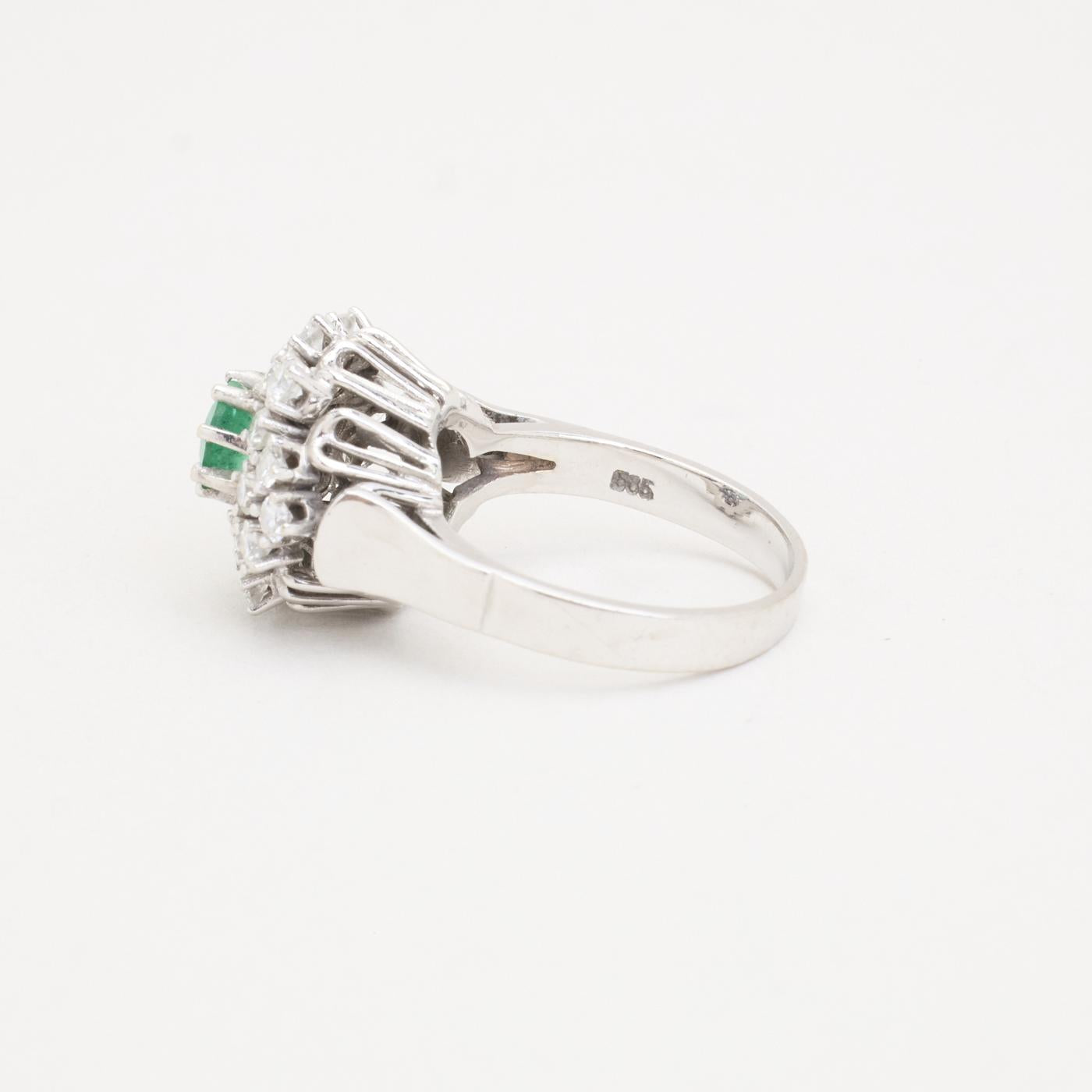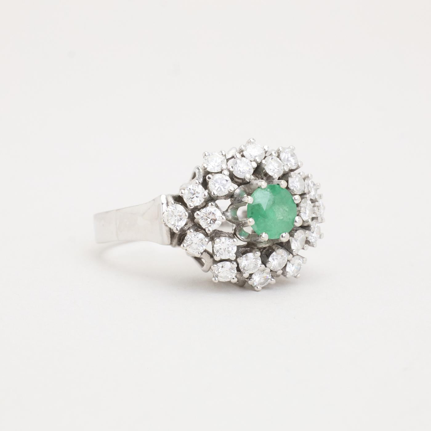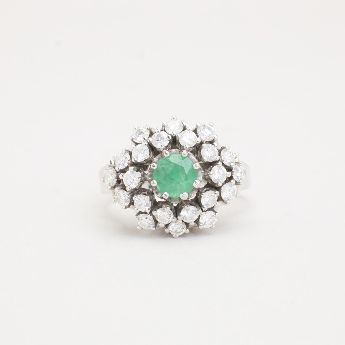 Rosettring med diamant (0.95 ct) i 14 karat med en smaragd str. 52