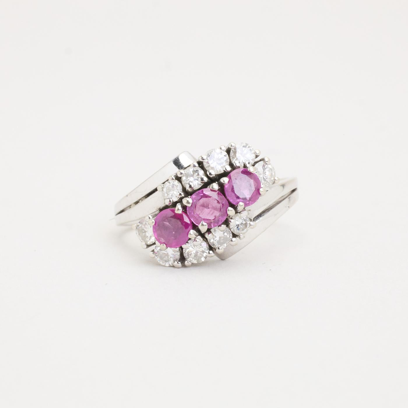 Clusterring med diamant (0.55 ct) i 14 karat med en rubin str. 52