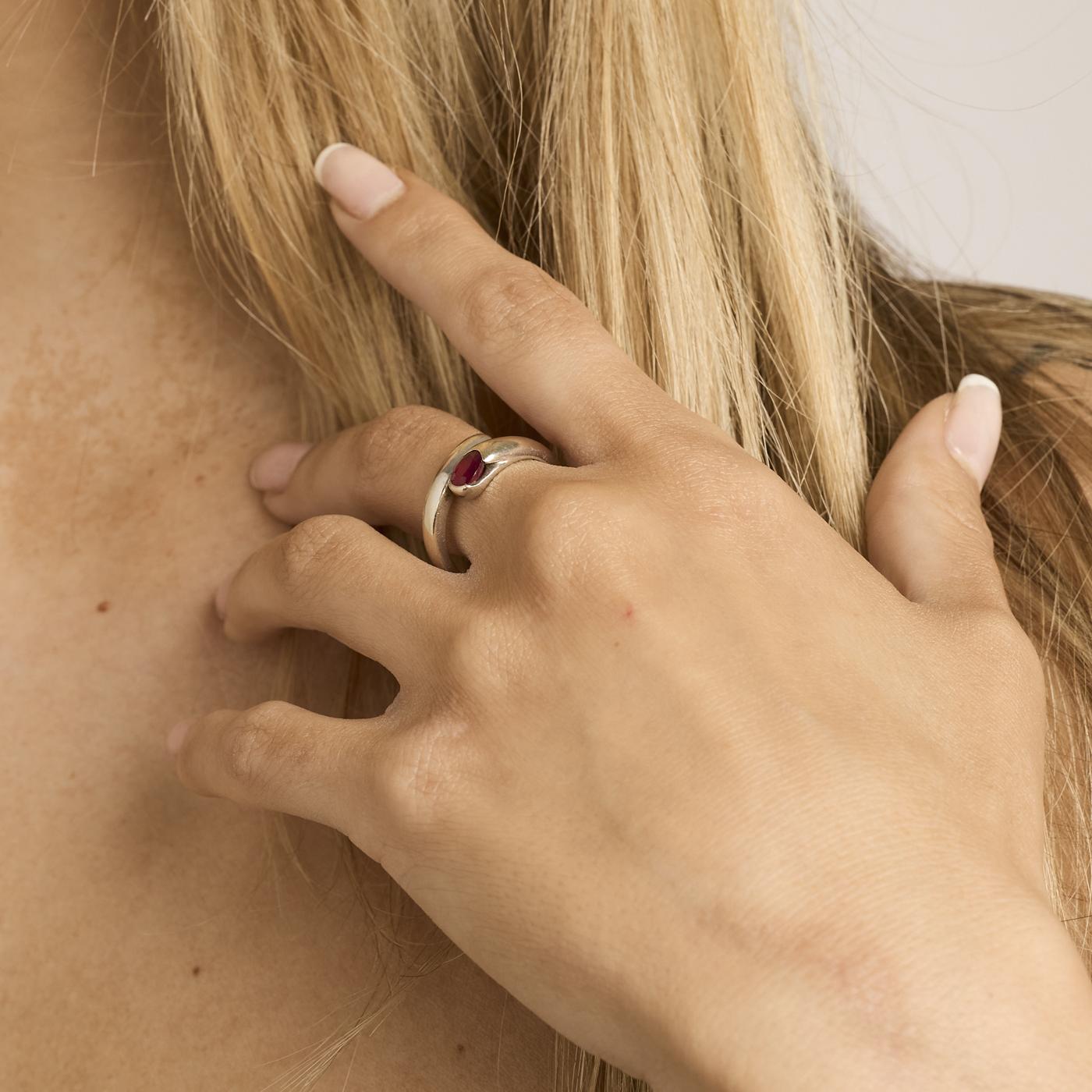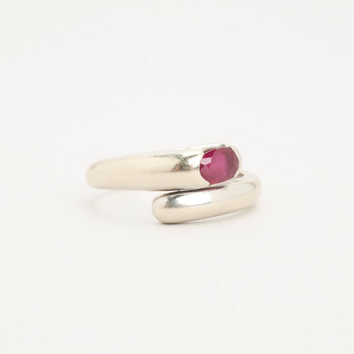 Modell: Crossoverring i 18 karat med en rubin str. 55 - 56