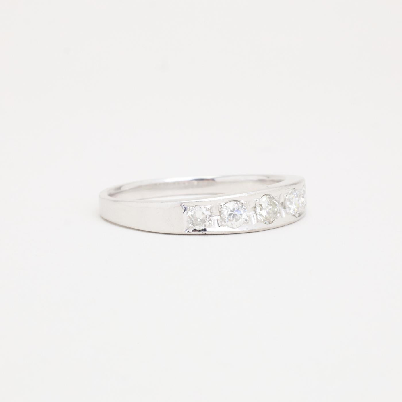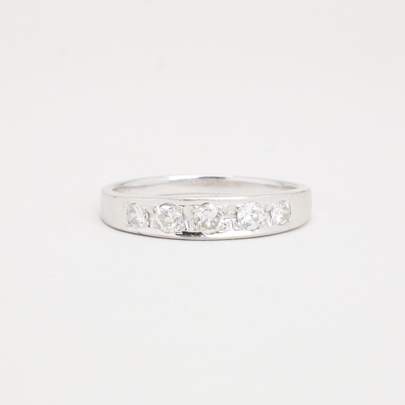Modell: Femstensring med diamant (0.58 ct) i 14 karat str. 68