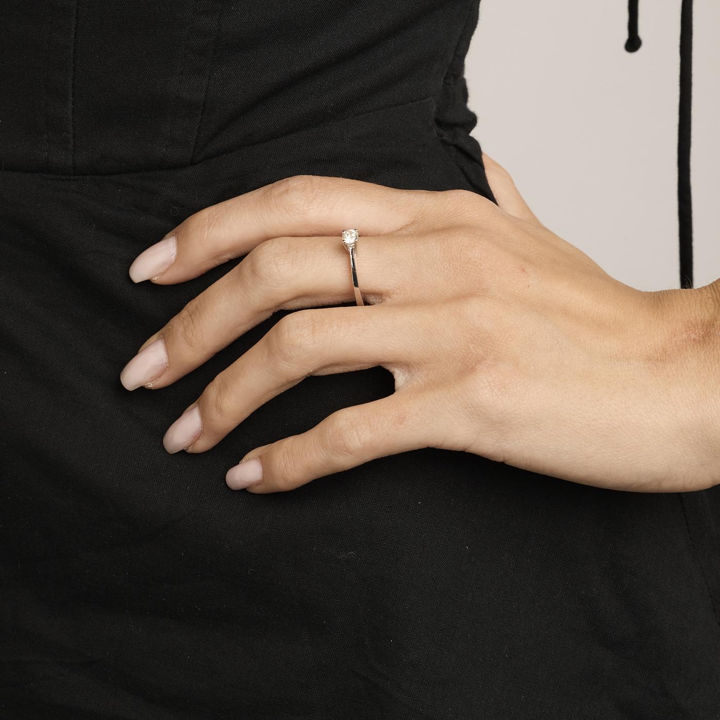 Modell: Solitairring med diamant (0.27 ct) i 14 karat str. 58