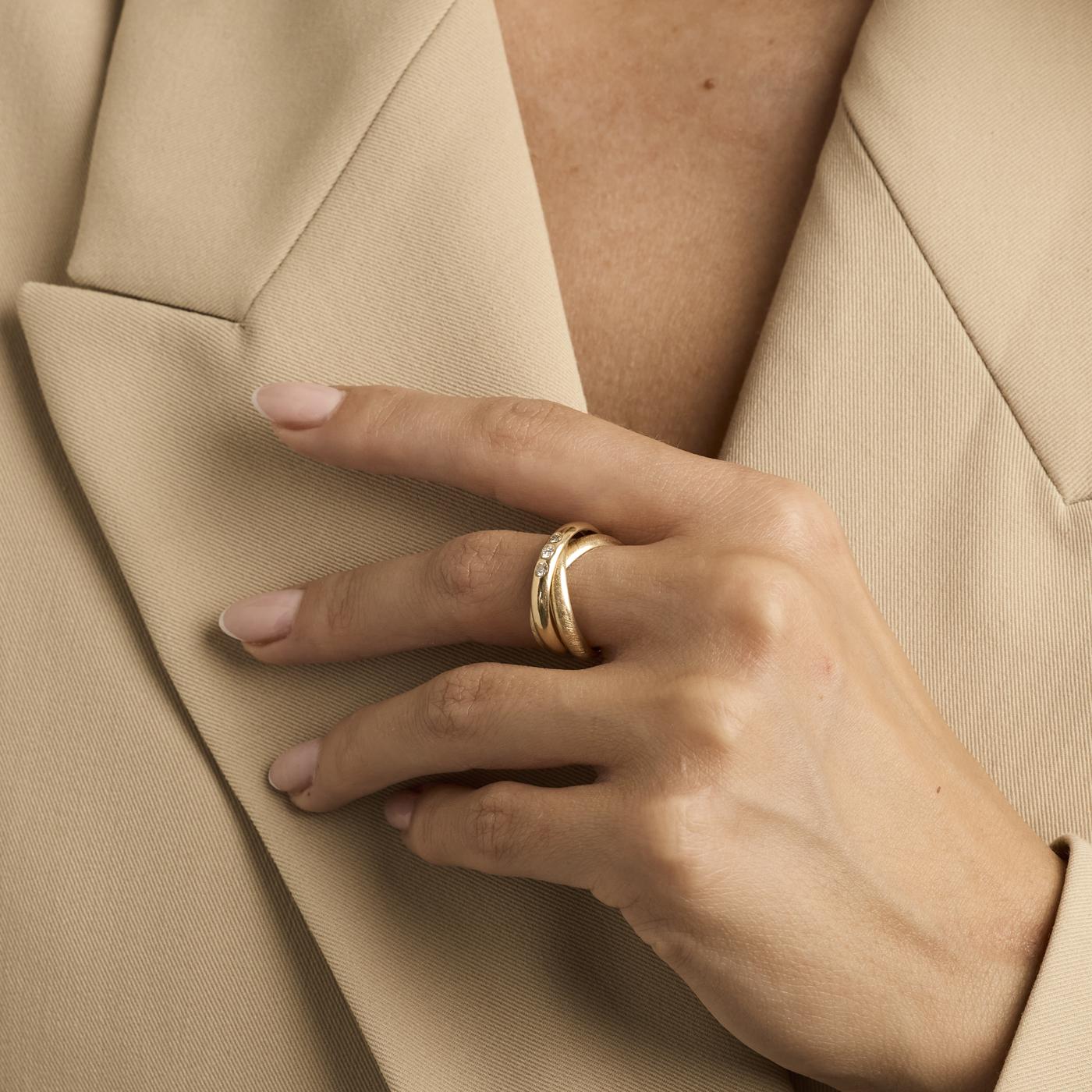 Modell: Crossoverring med diamant (0.11 ct) i 14 karat str. 51