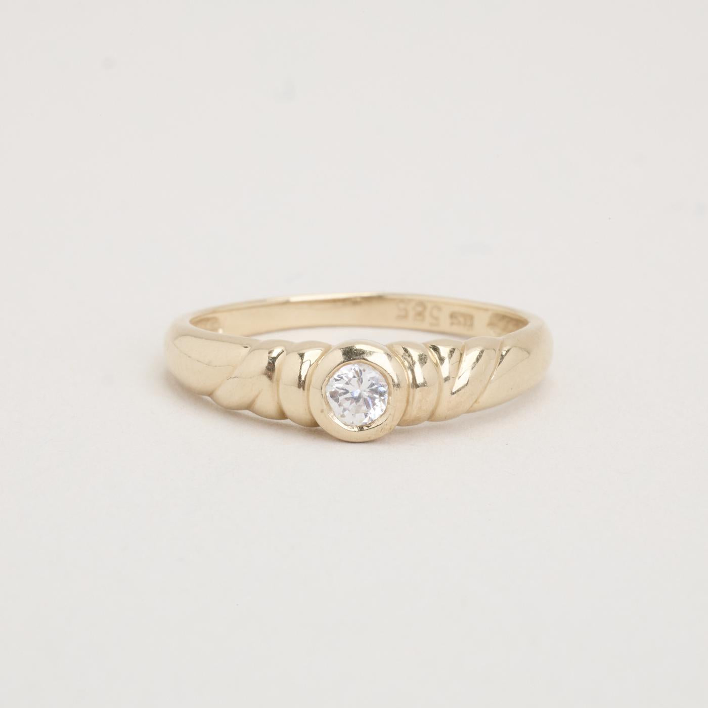 Modell: Solitairring i 14 karat med en Zirkonia str. 57