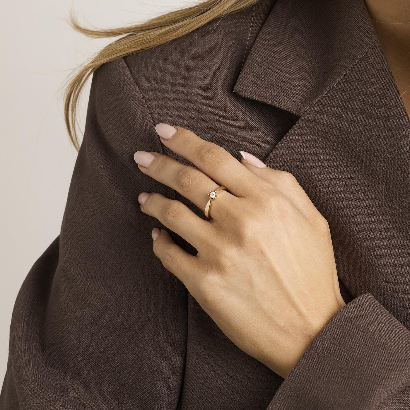 Modell: Solitairring med diamant (0.12 ct) i 14 karat str. 49