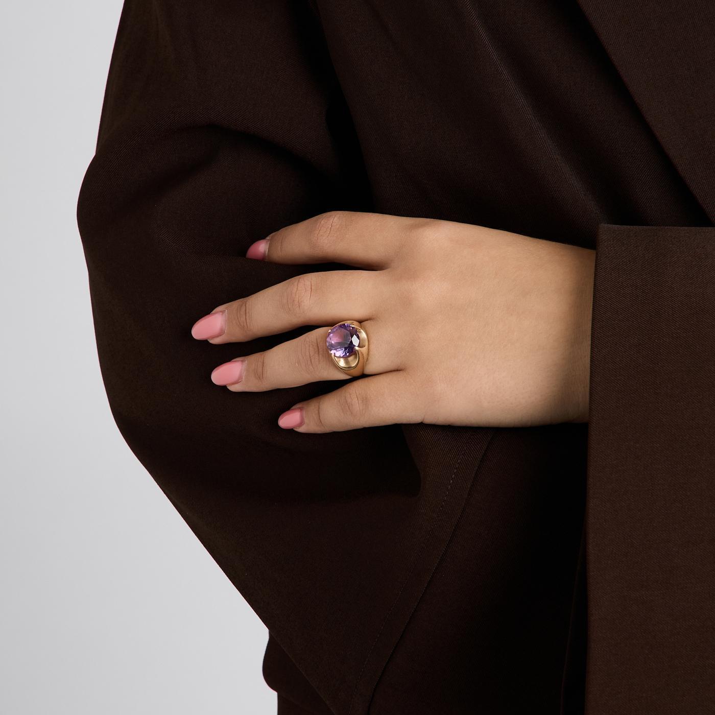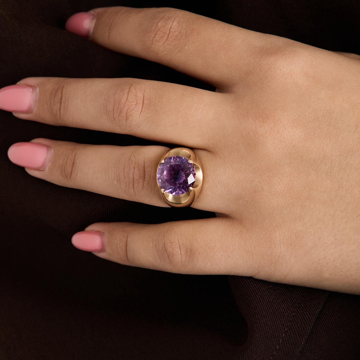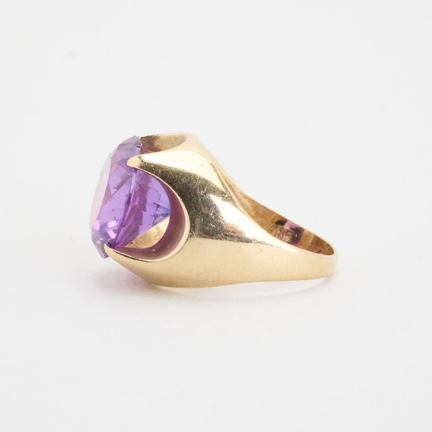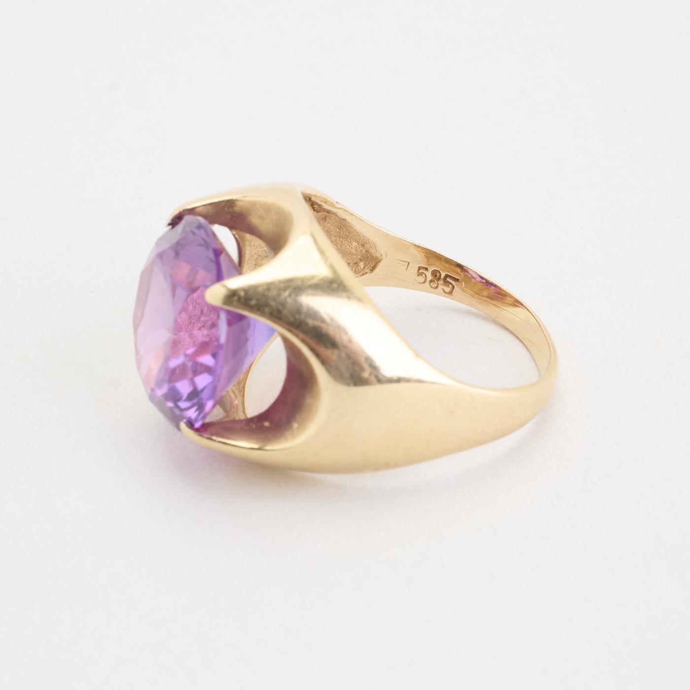 Modell: Uttalelse ring i 14 karat med en syntetisk safir str. 51
