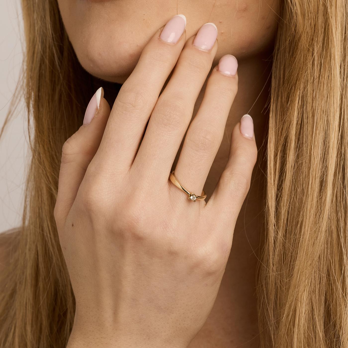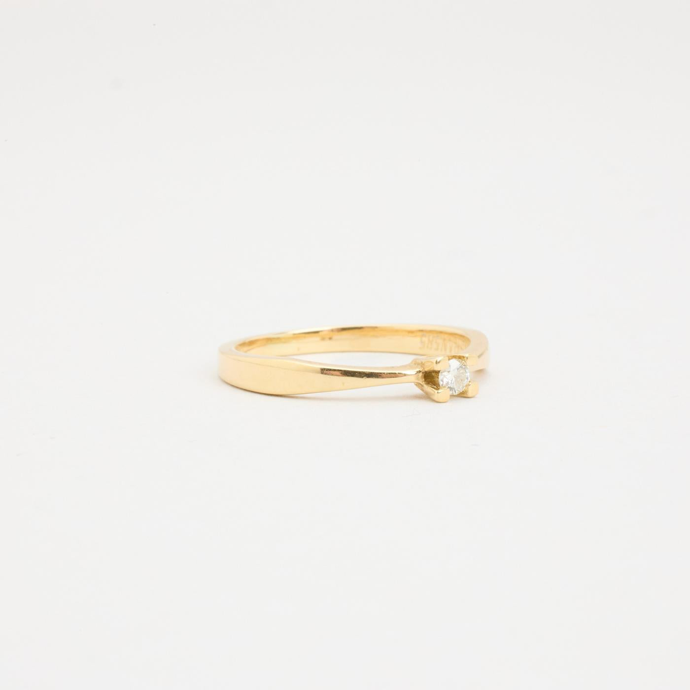 Modell: Solitairring med diamant (0.06 ct) i 14 karat str. 50