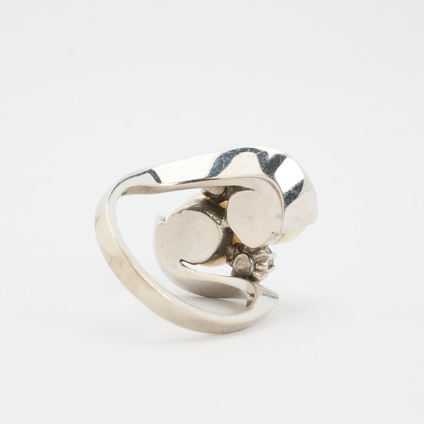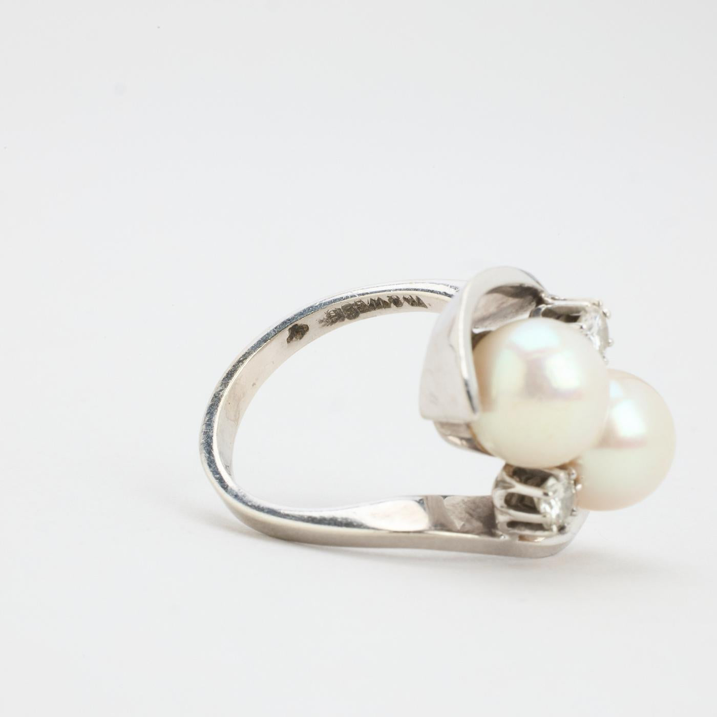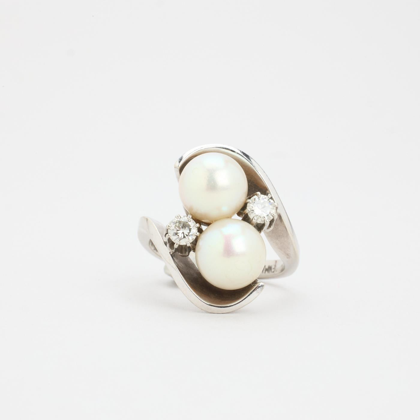 Modell: Toi et Moi ring med diamant (0.38 ct) i 14 karat med en perle str. 53