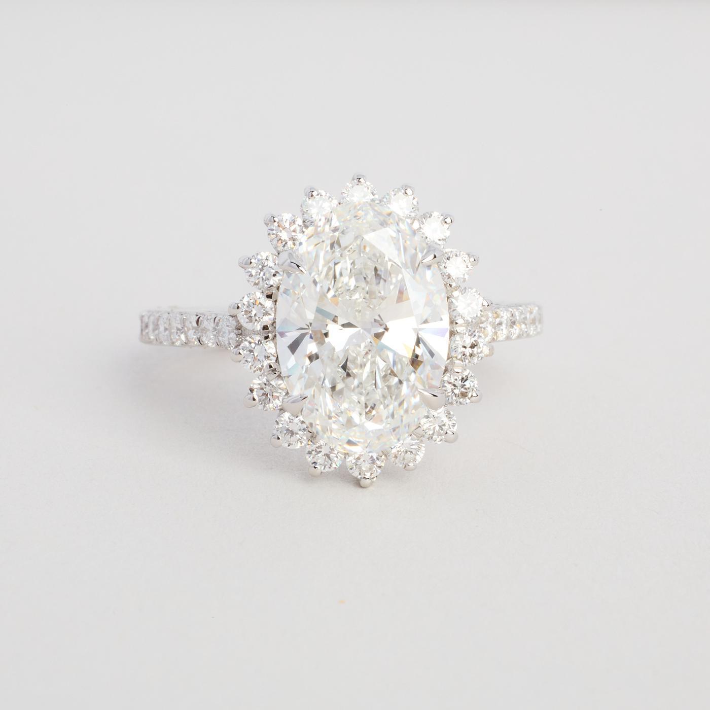 Modell: Rosettring med diamant (3.72 ct) i 14 karat str. 53