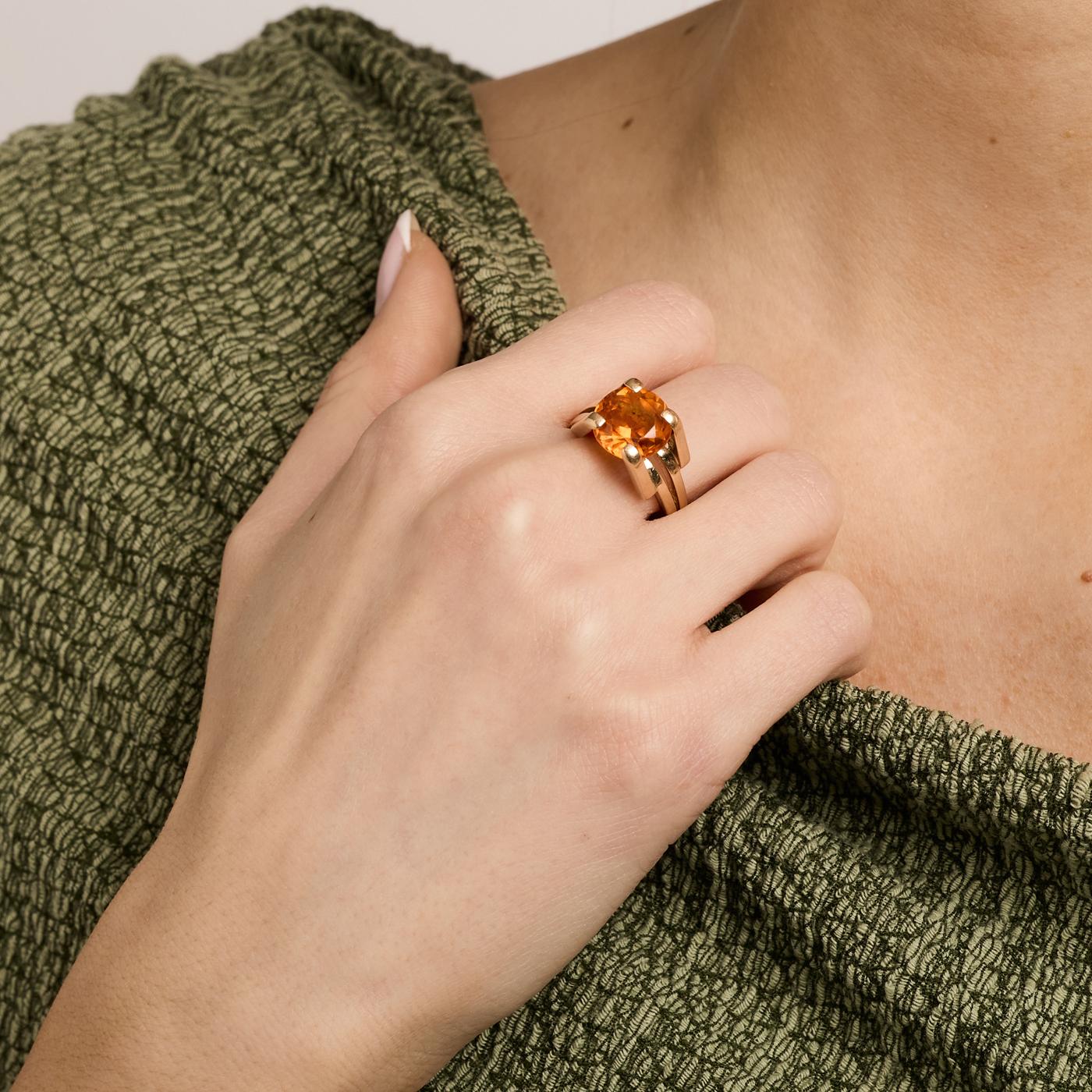 Modell: Uttalelse ring i 14 karat med en syntetisk safir str. 52