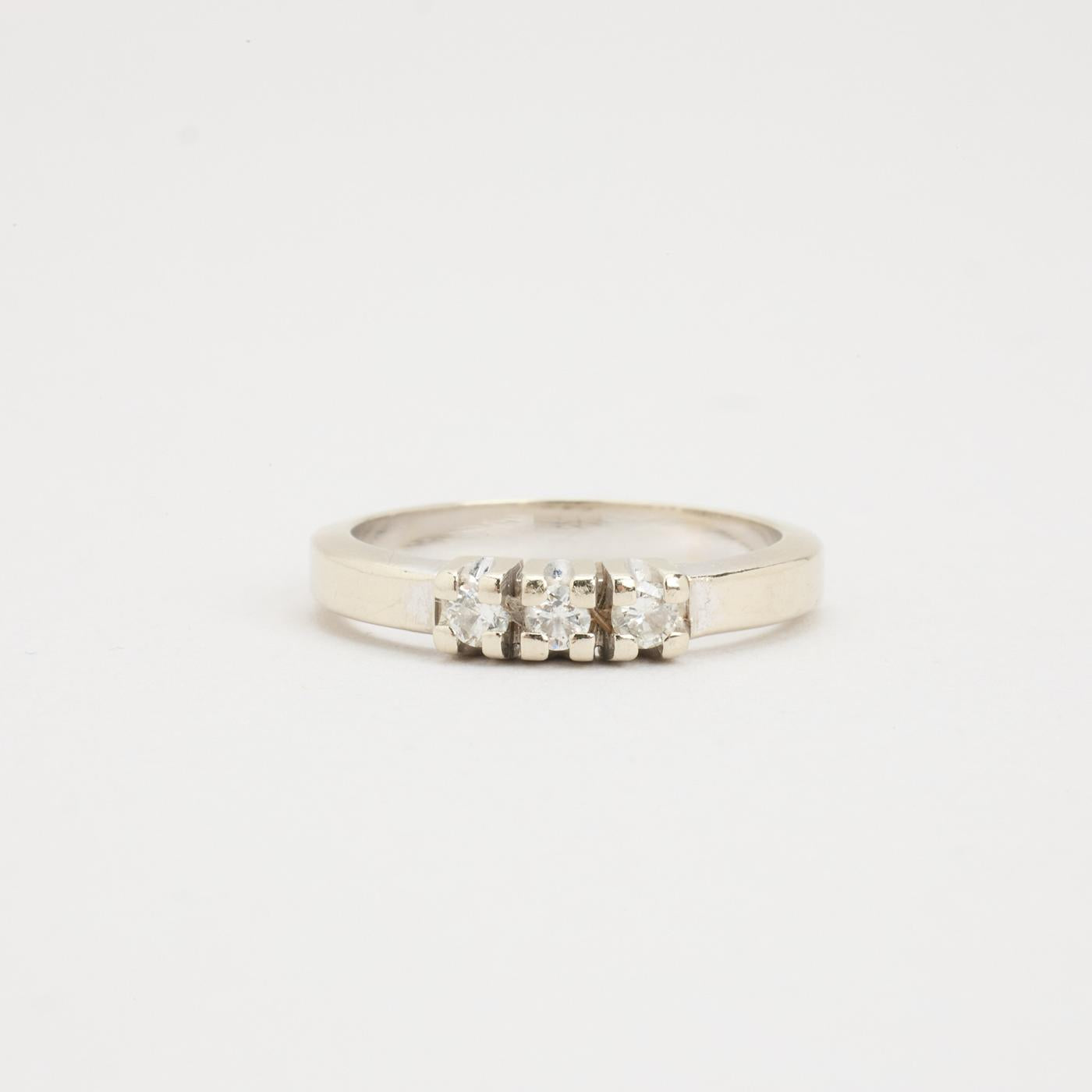 Modell: Tre stein ring med diamant (0.13 ct) i 14 karat str. 51