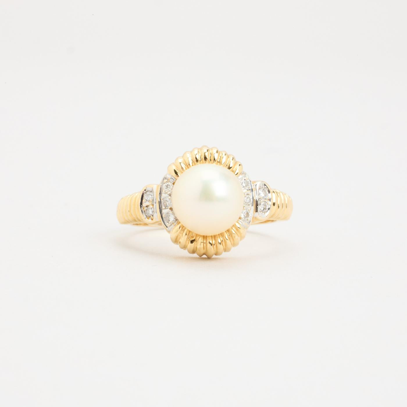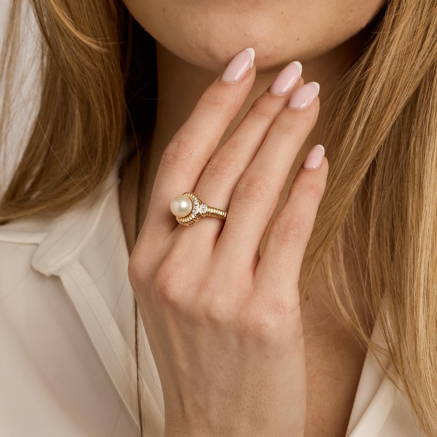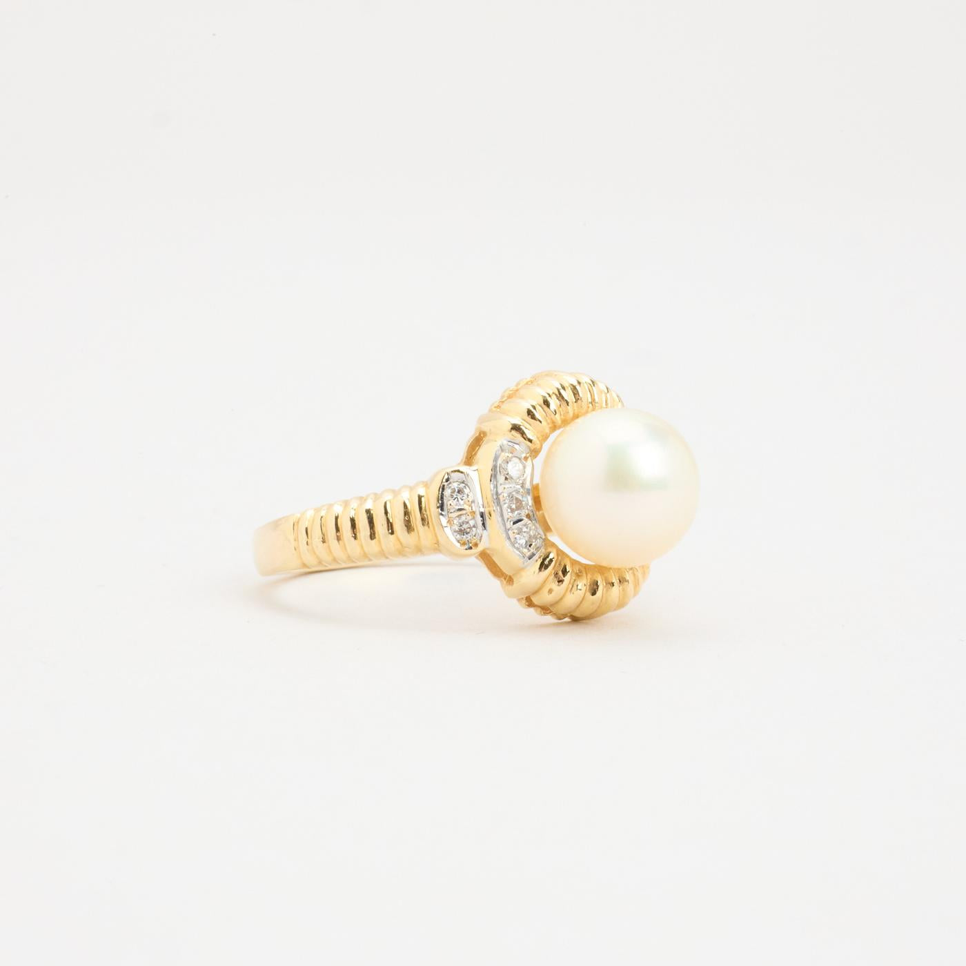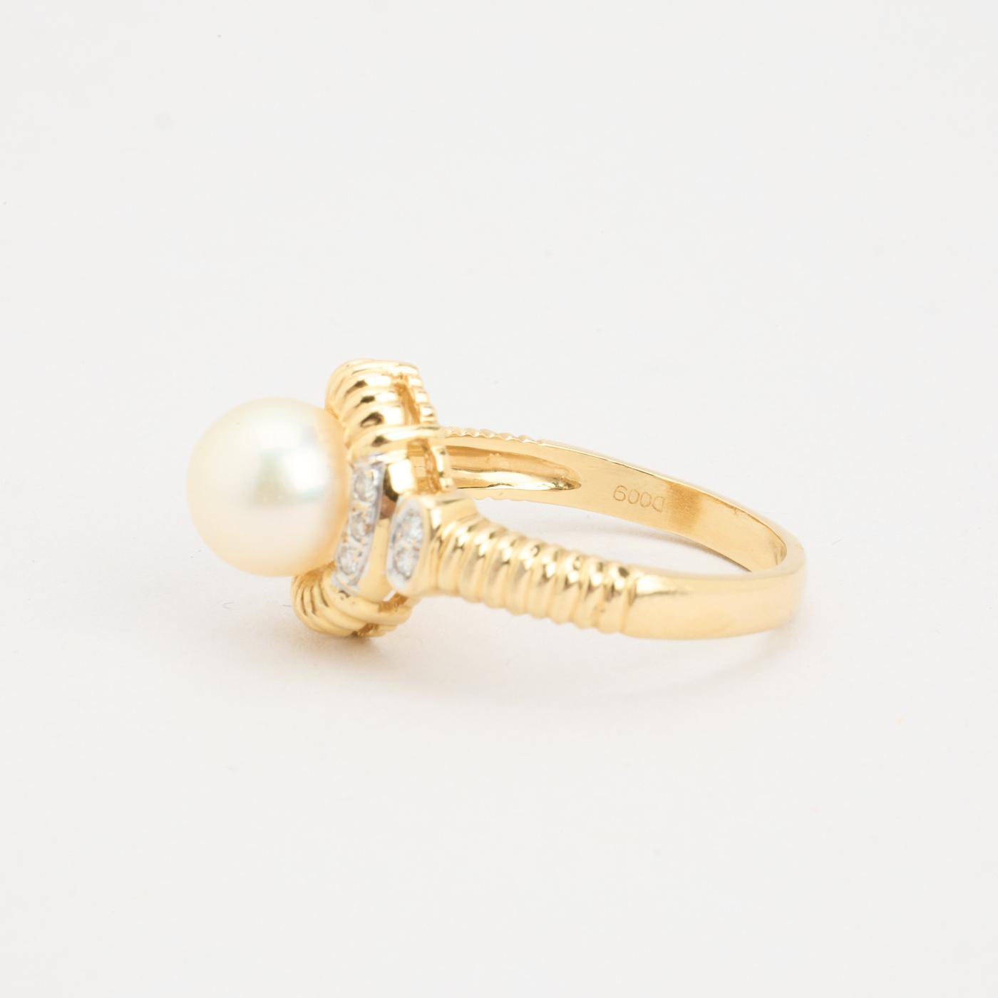 Modell: Uttalelse ring med diamant (0.05 ct) i 18 karat med en perle och diamant str. 54
