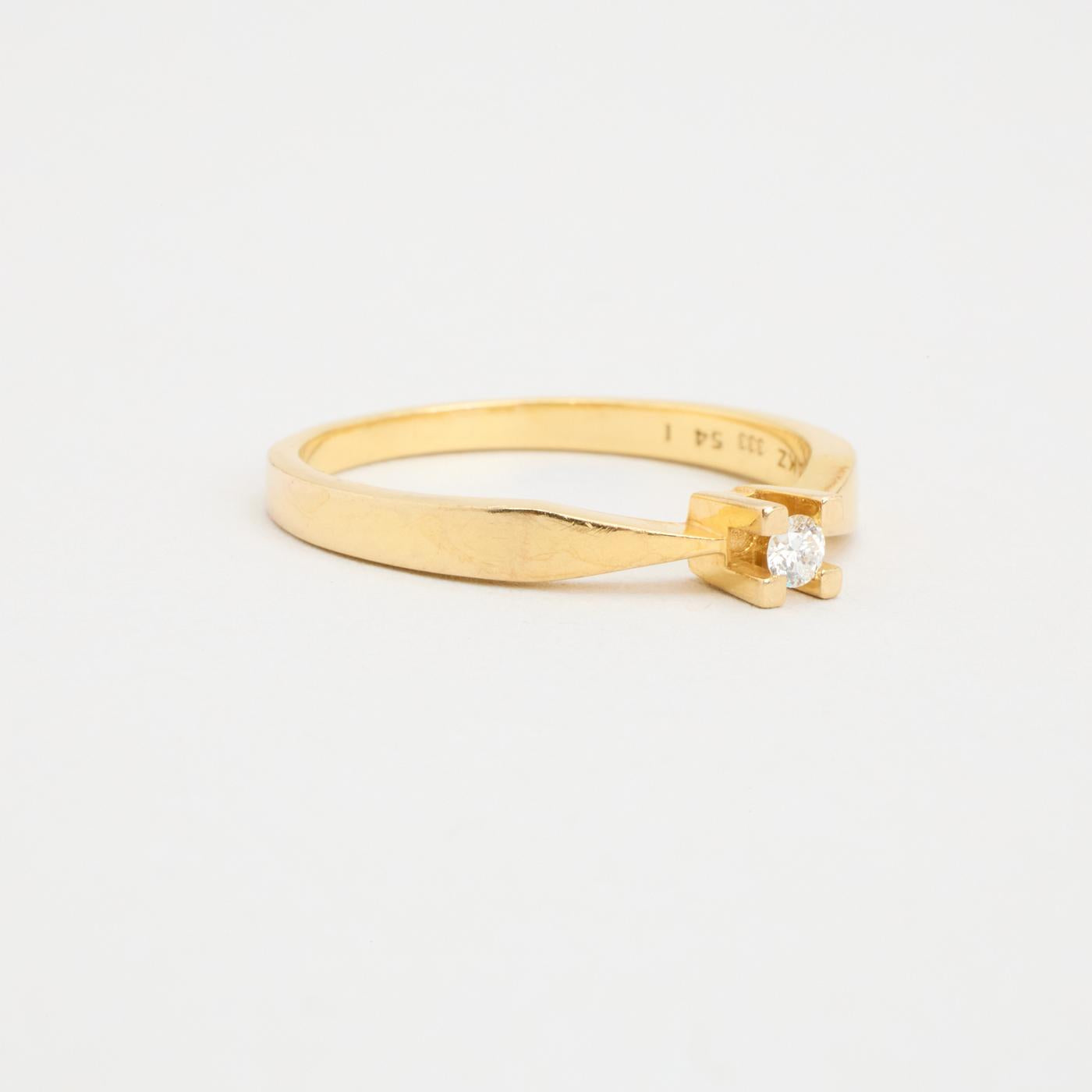 Modell: Solitairring med diamant (0.05 ct) i 8 karat str. 54