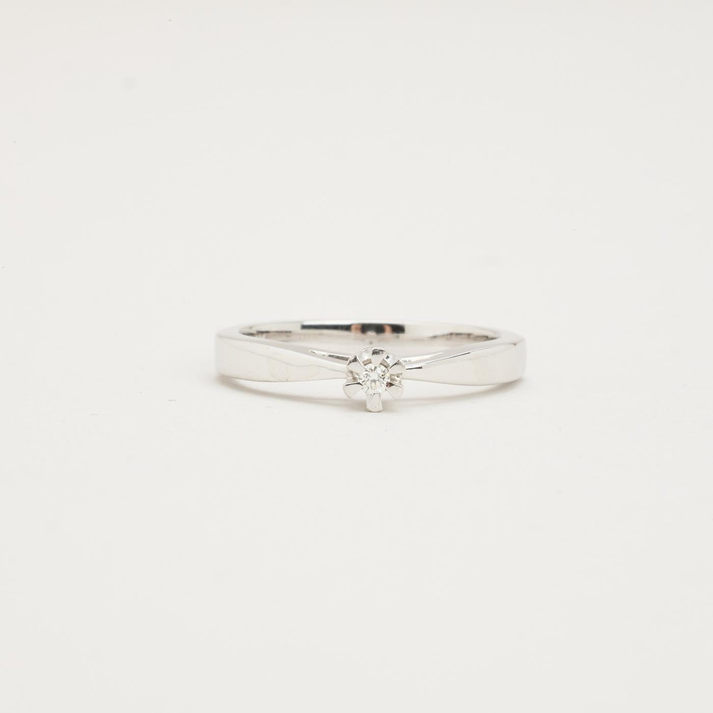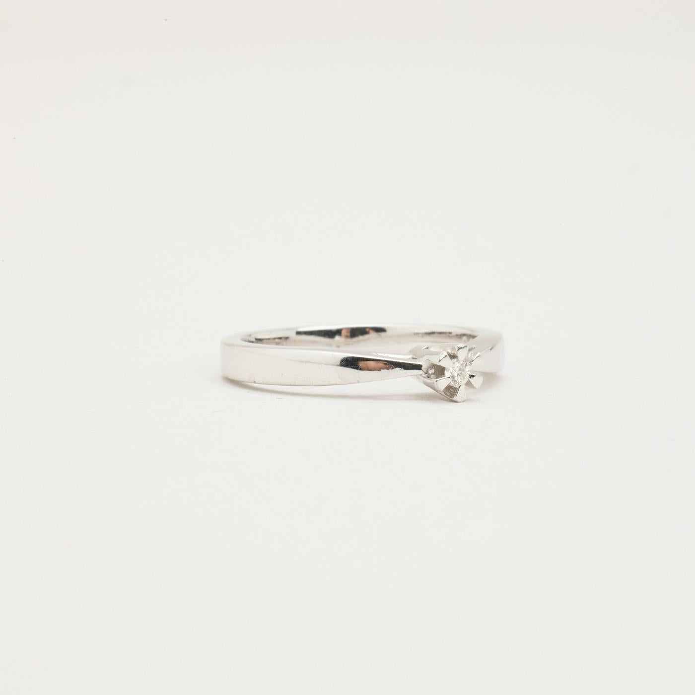 Modell: Solitairring med diamant (0.02 ct) i 14 karat str. 53