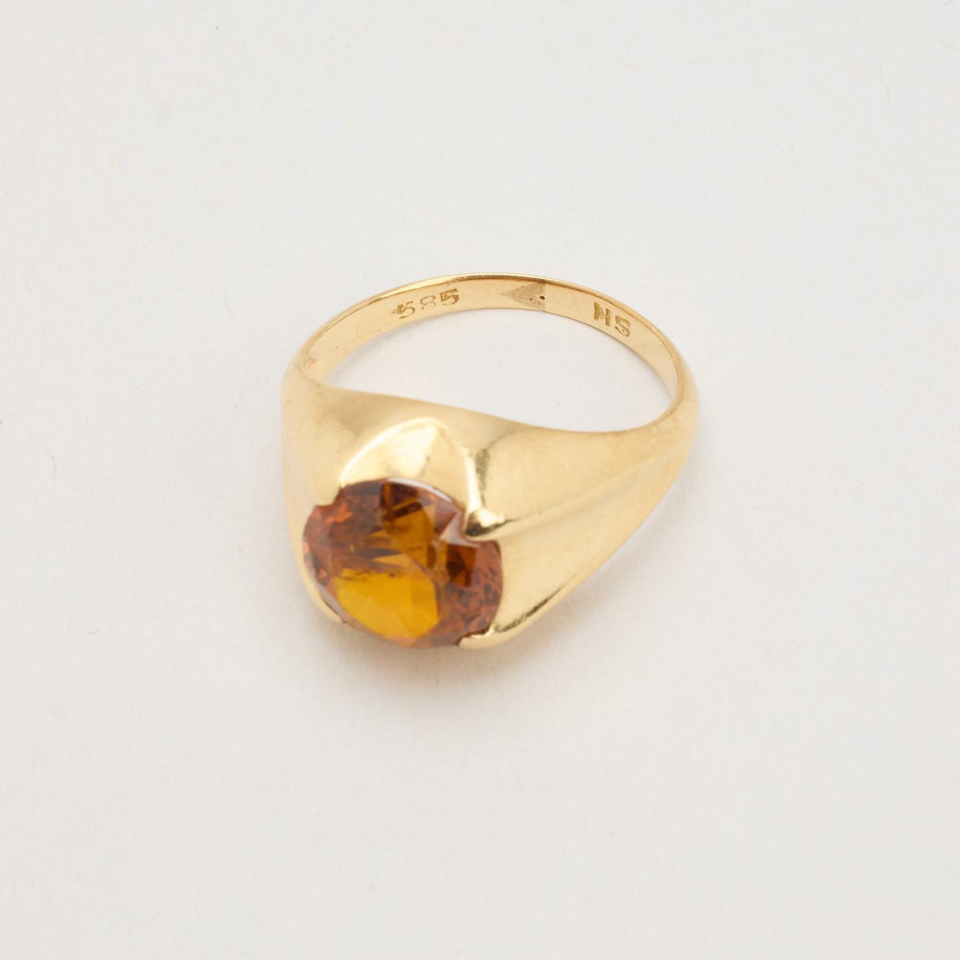 Modell: Uttalelse ring i 14 karat med en syntetisk safir str. 55