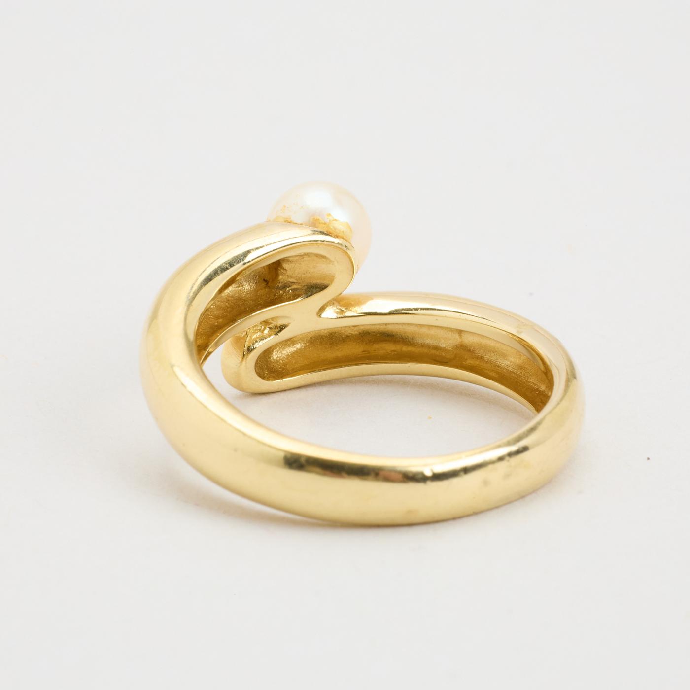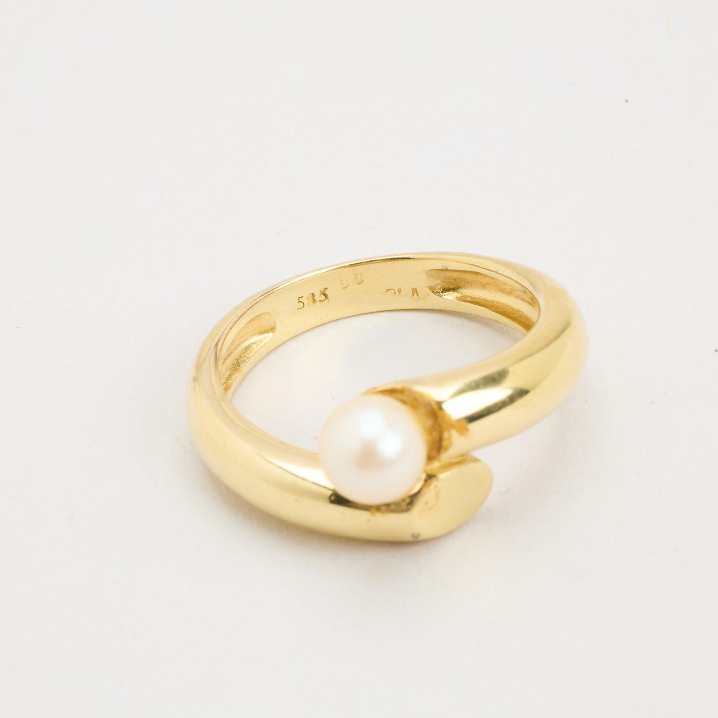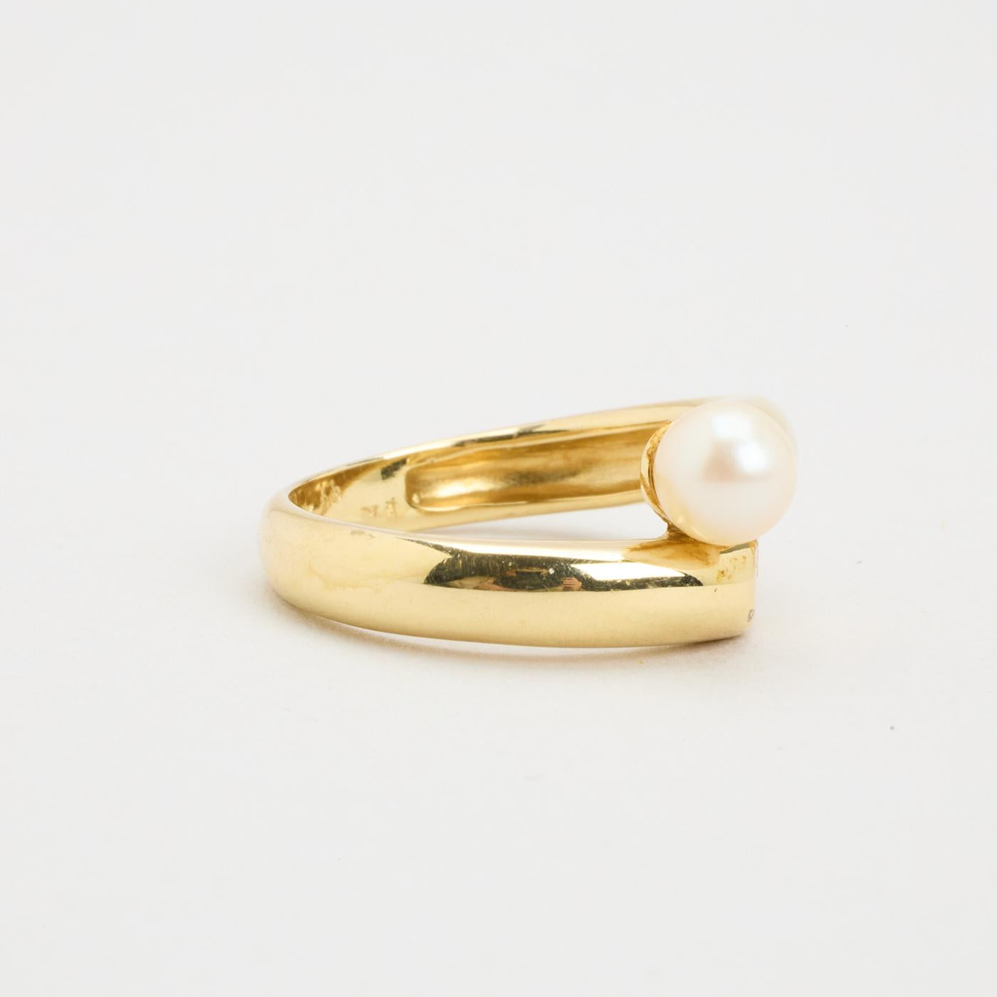 Modell: Crossoverring i 14 karat med en perle str. 54