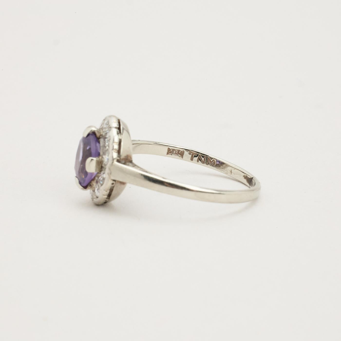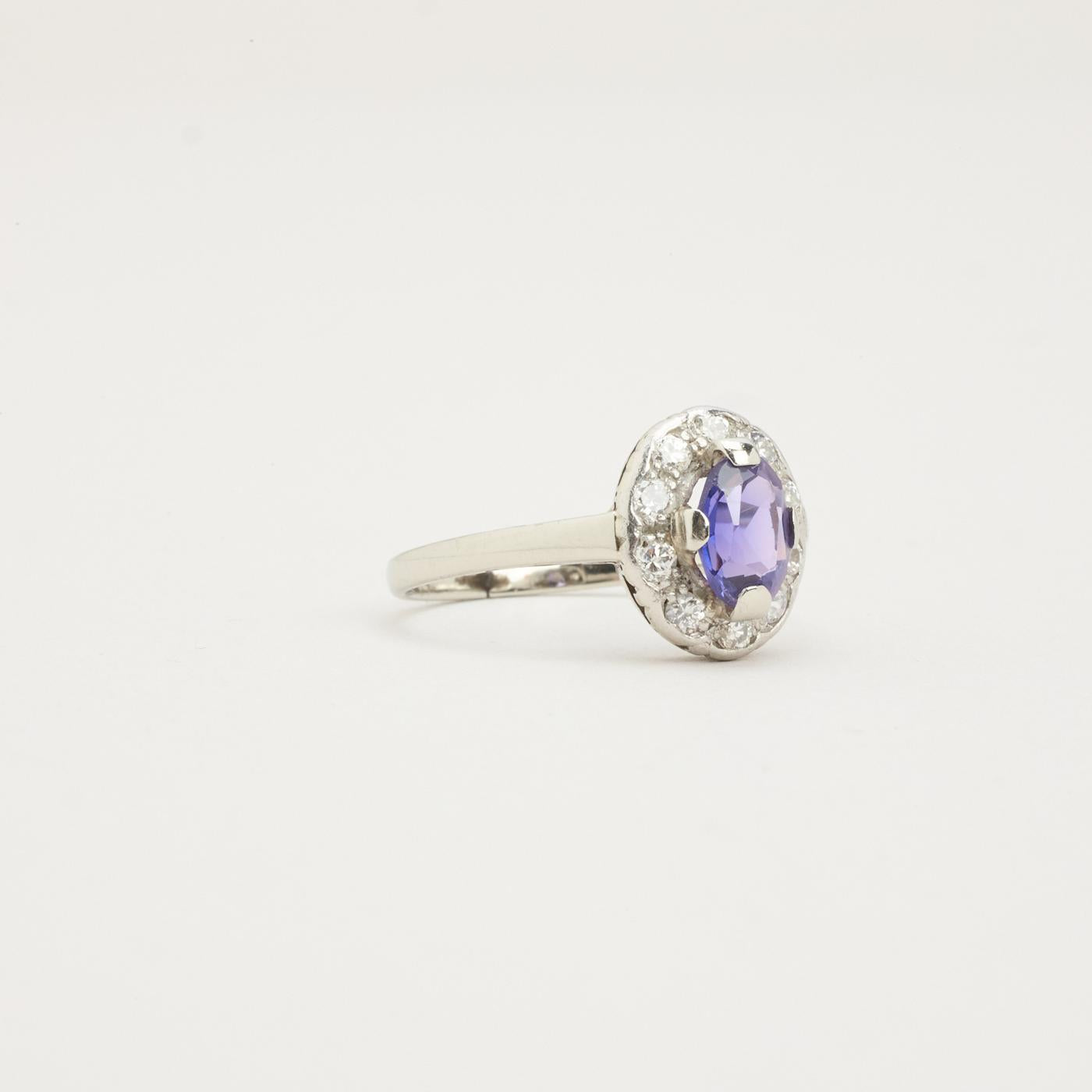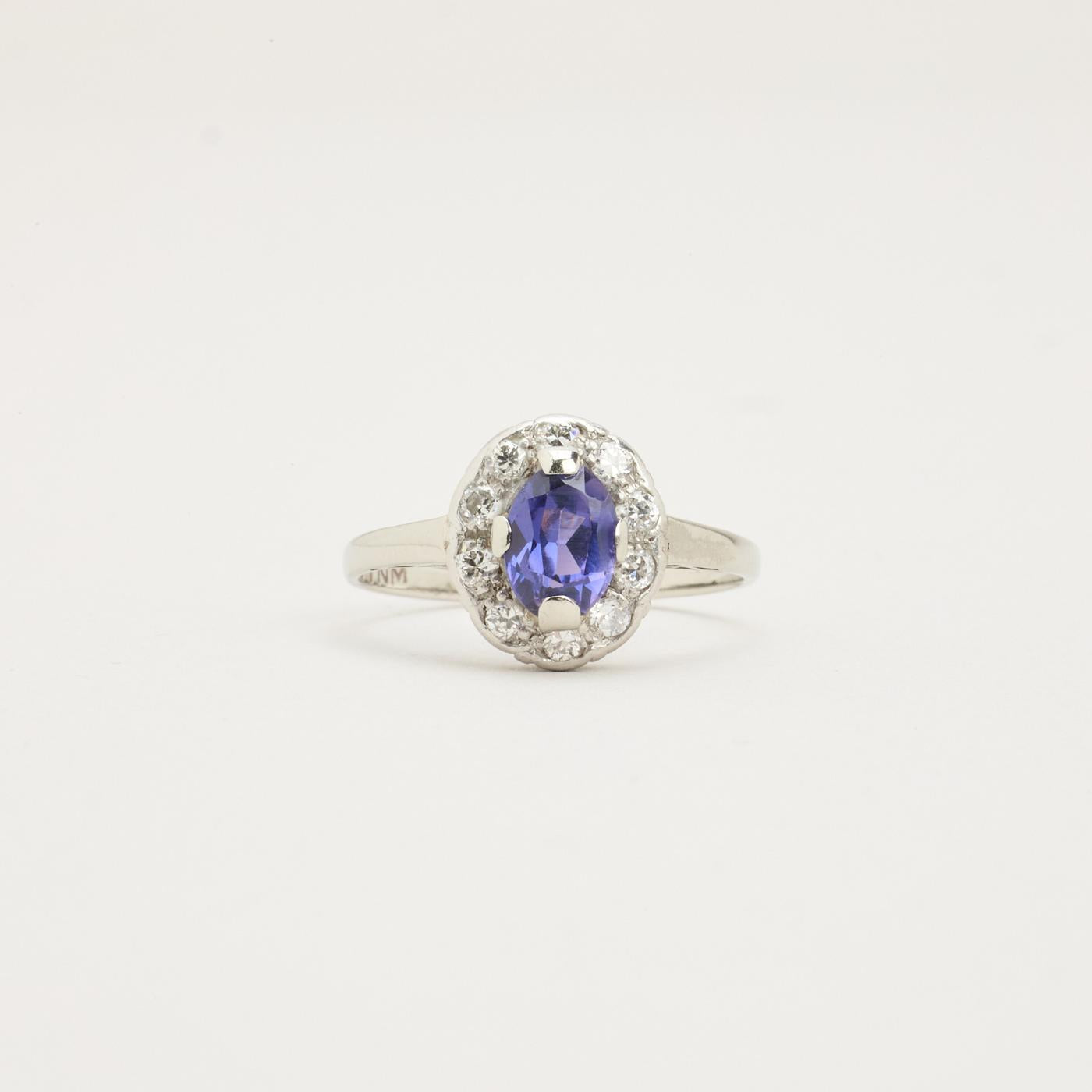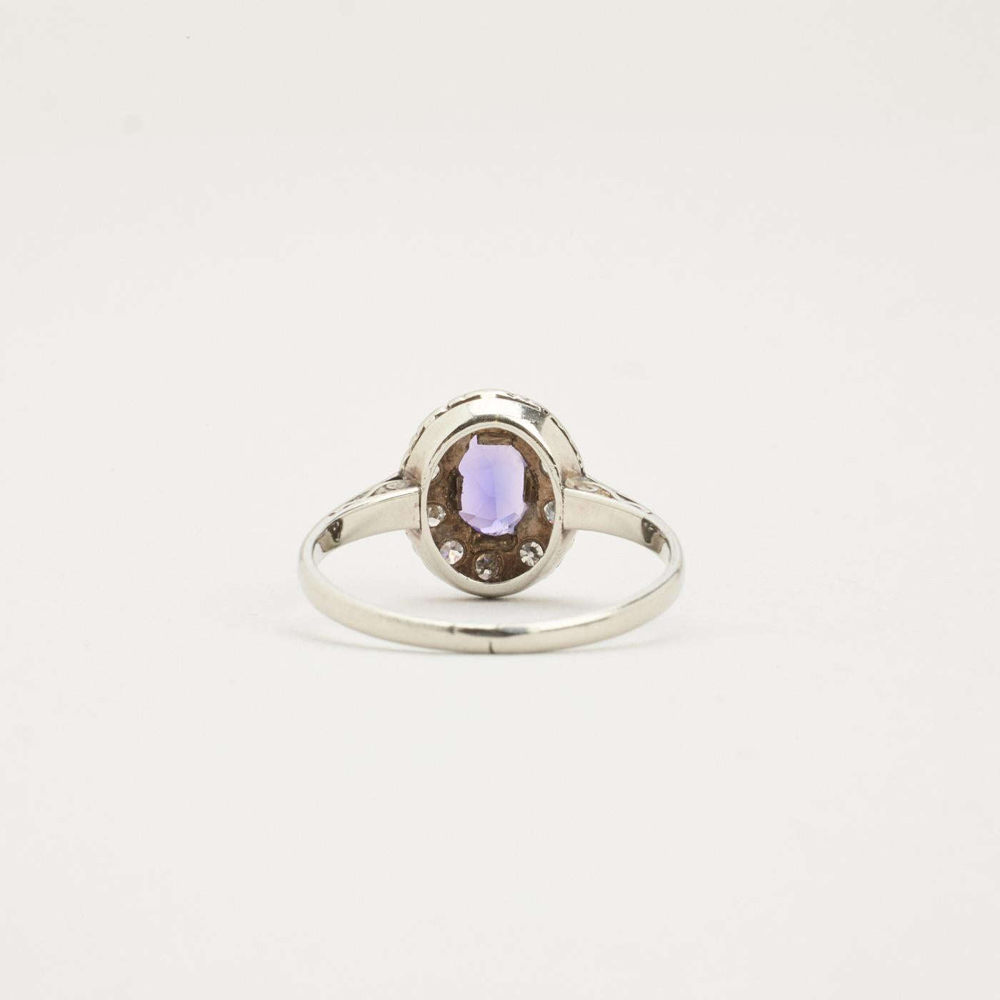 Modell: Rosettring med diamant (0.11 ct) i 14 karat med en syntetisk safir str. 53