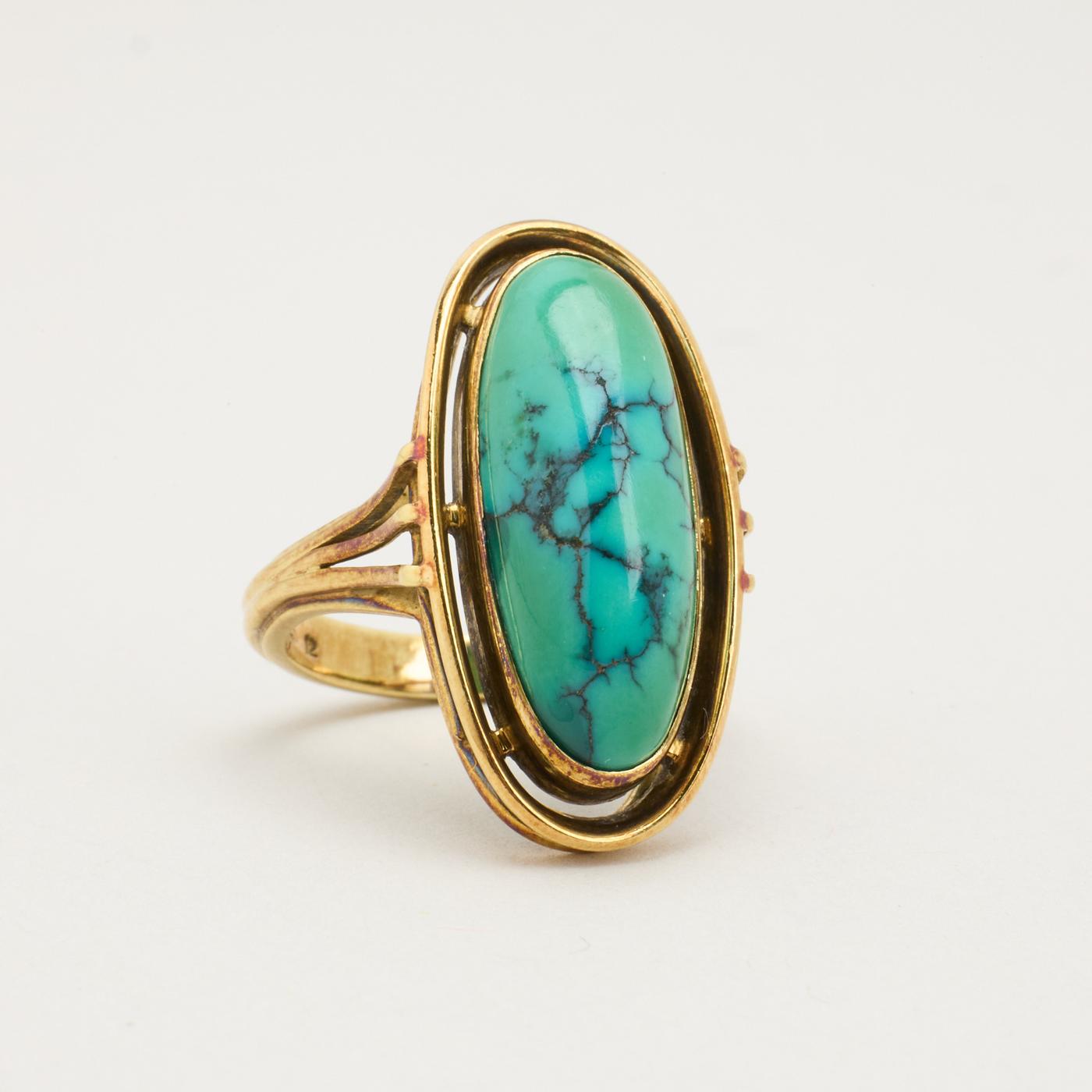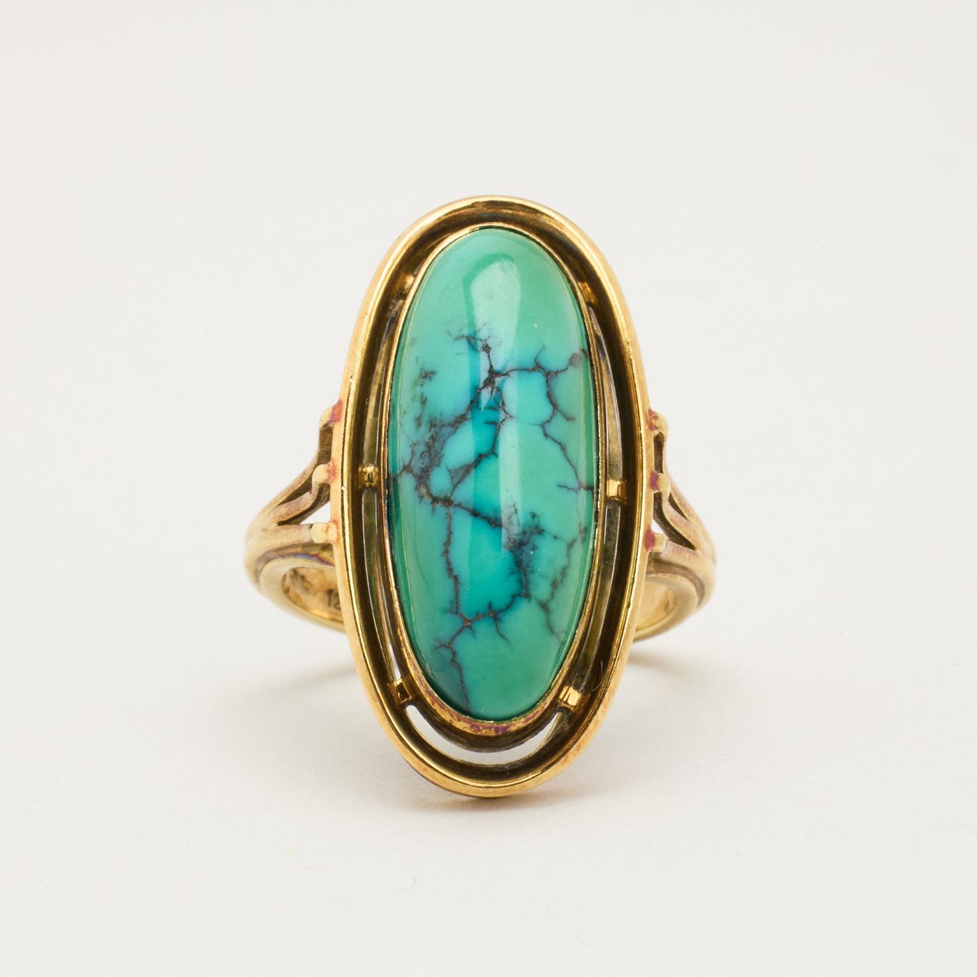 Modell: Uttalelse ring i 14 karat med en turkis str. 51 - 52